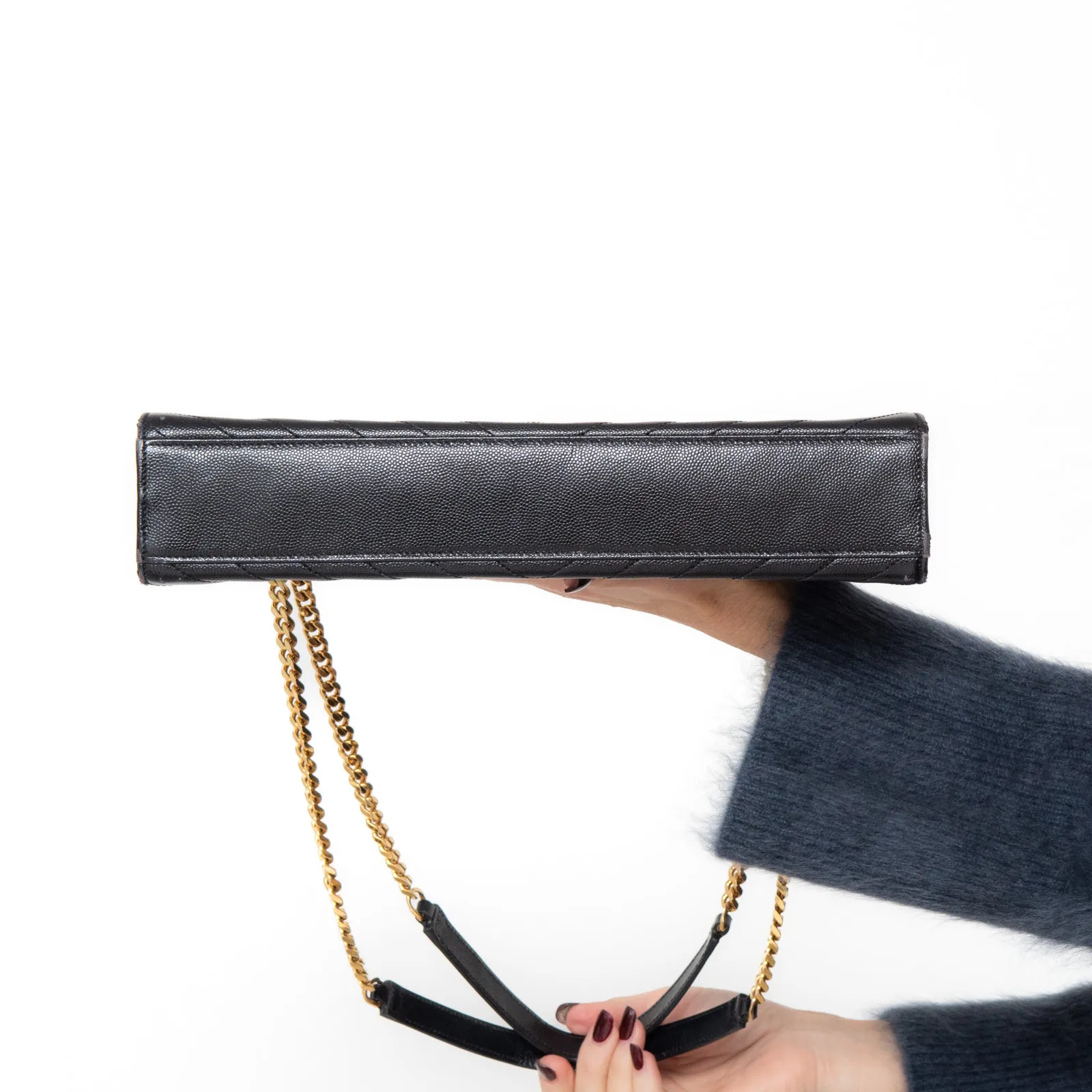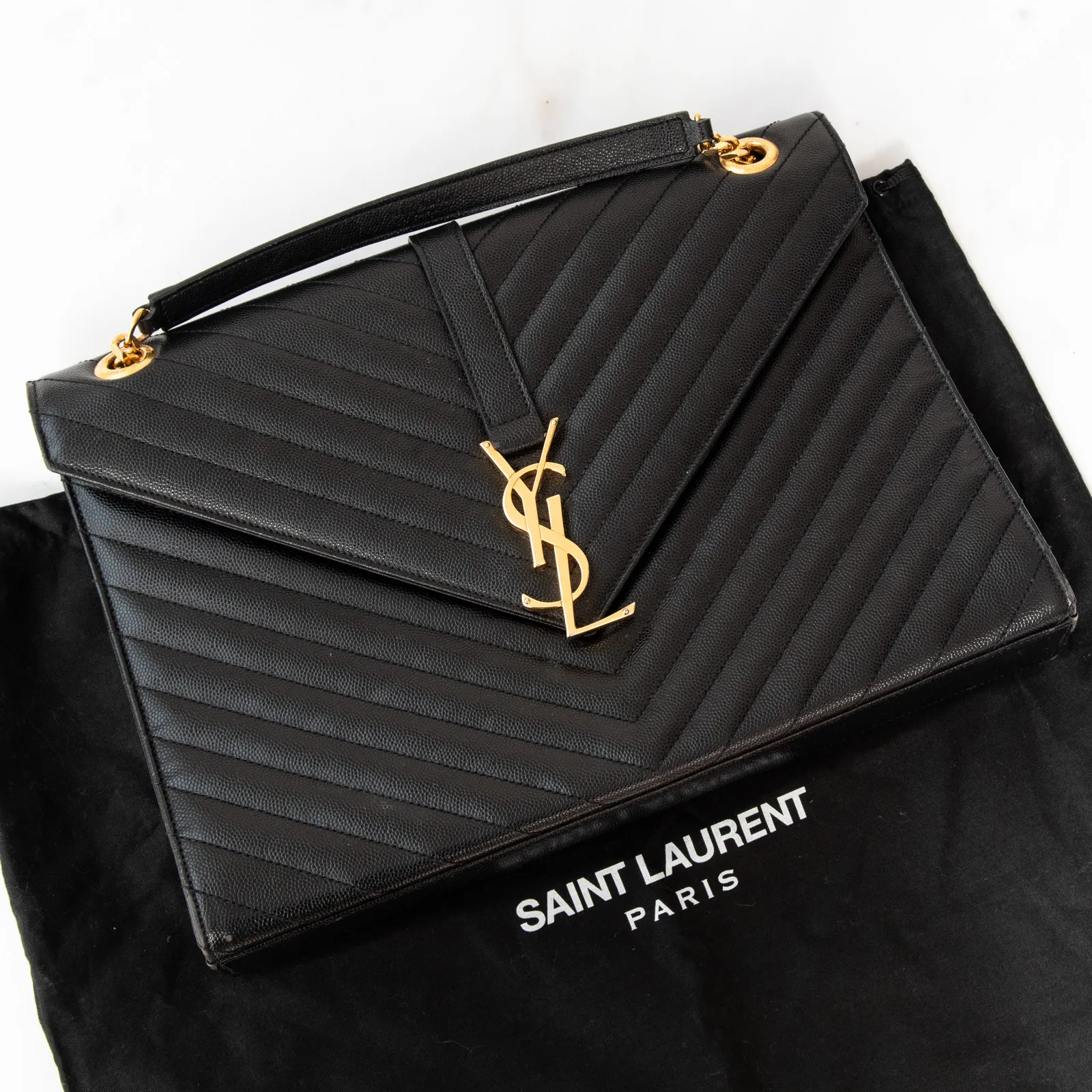 Saint Laurent Black Leather Large Envelope Shoulder Bag