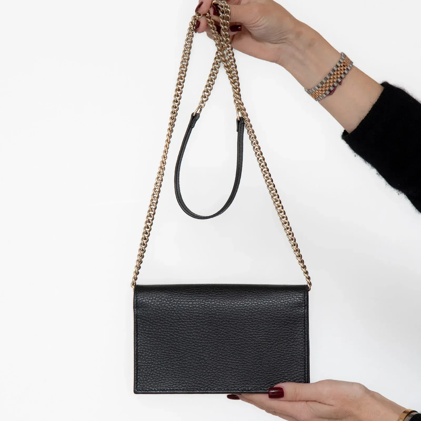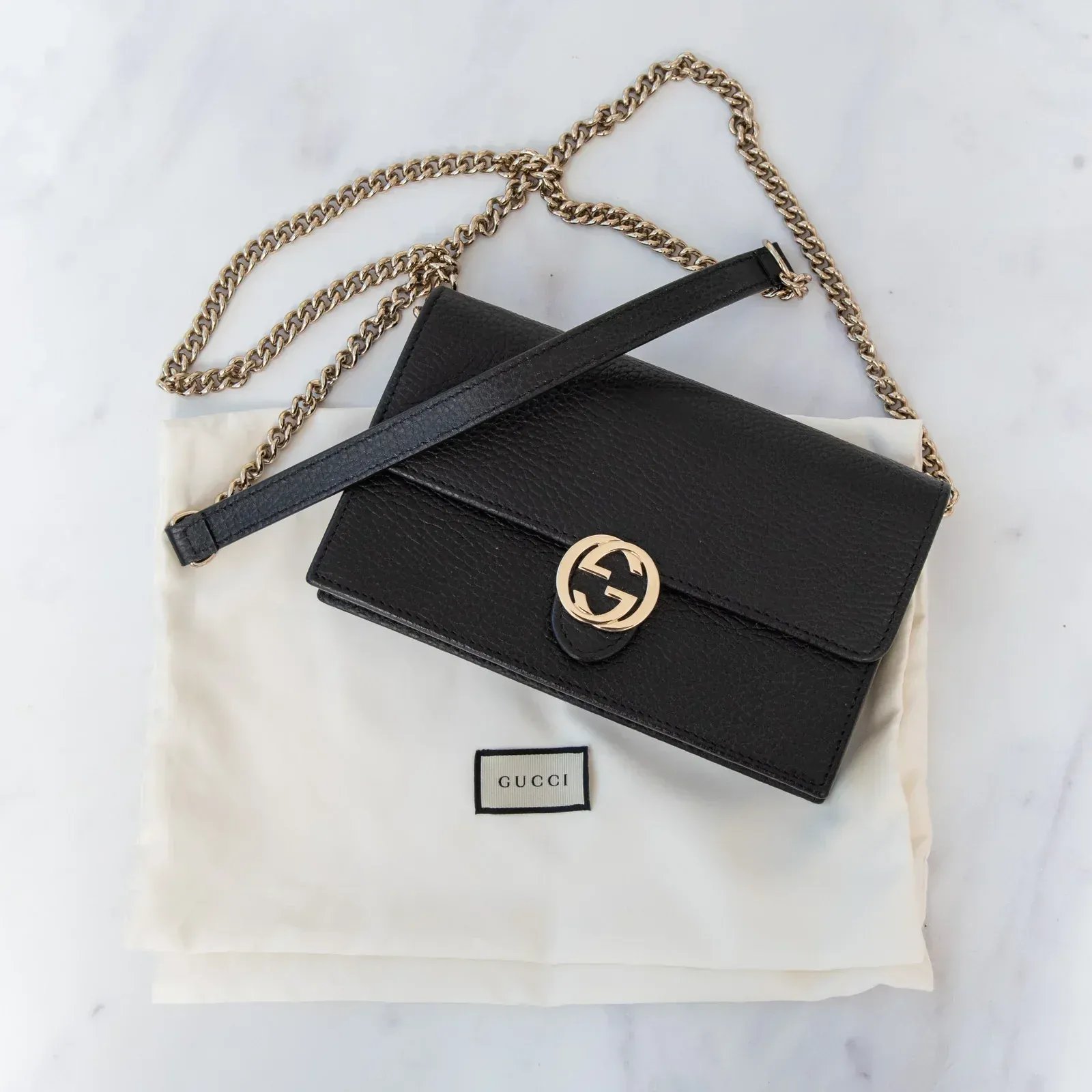 • Gucci Black Leather Interlocking G Dollar Wallet On Chain Crossbody Bag