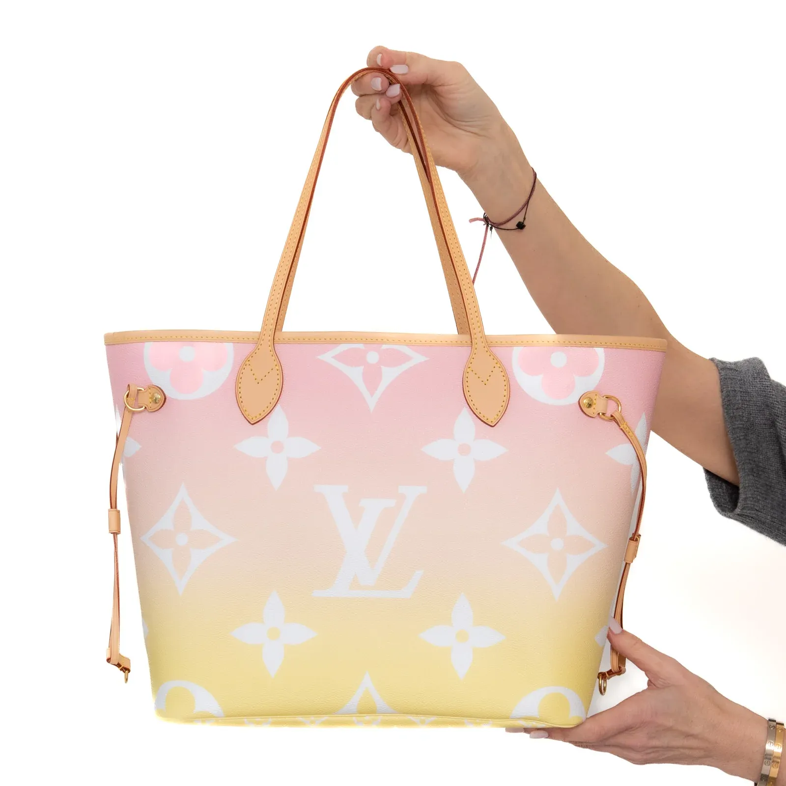 coated canvas in a pink and yellow ombre effect, a vachetta leather strap