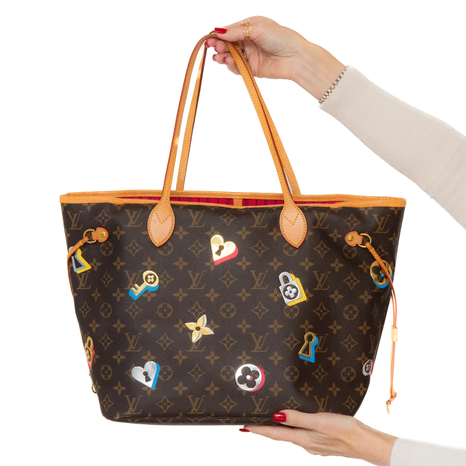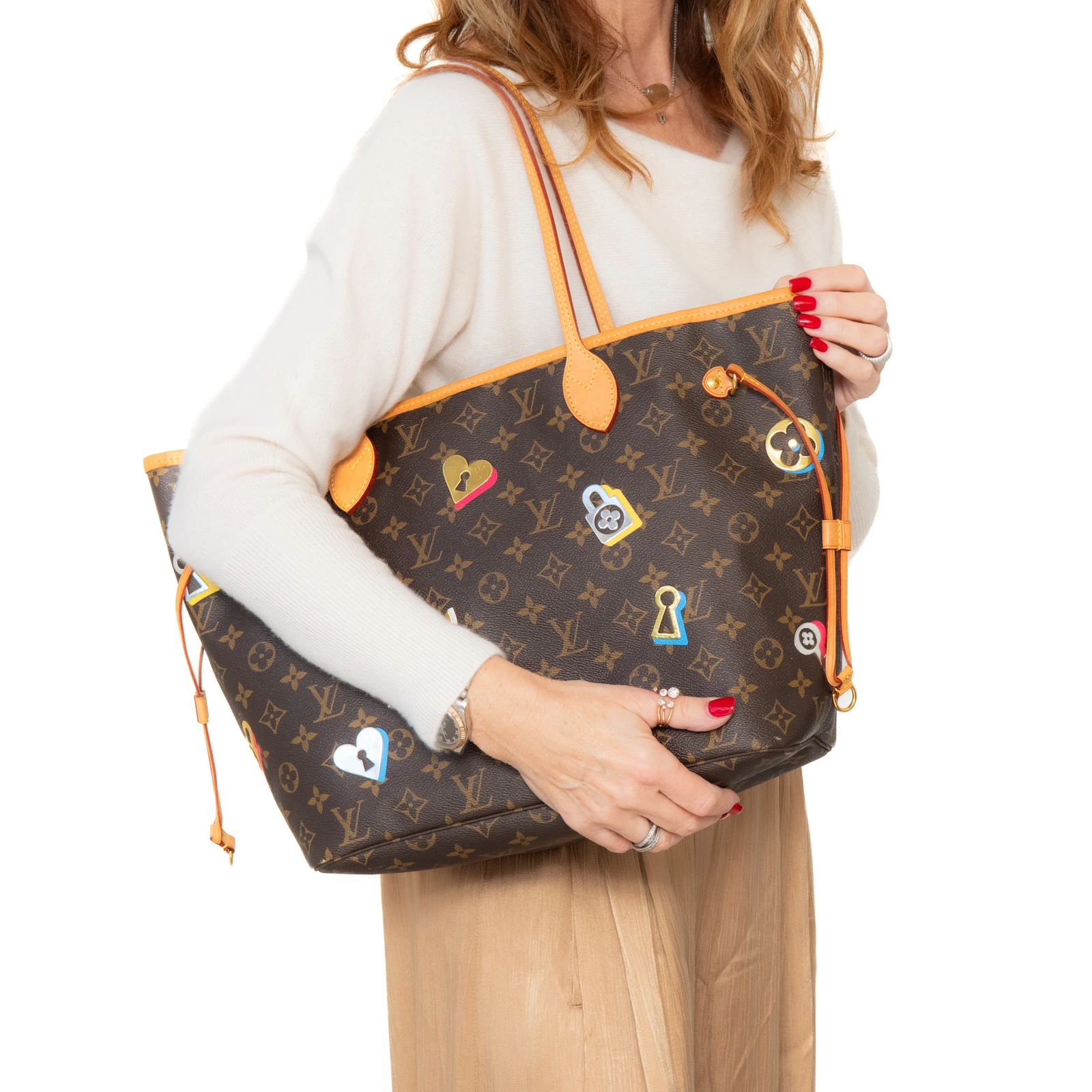 • Louis Vuitton Love Lock Neverfull MM Monogram Tote Bag