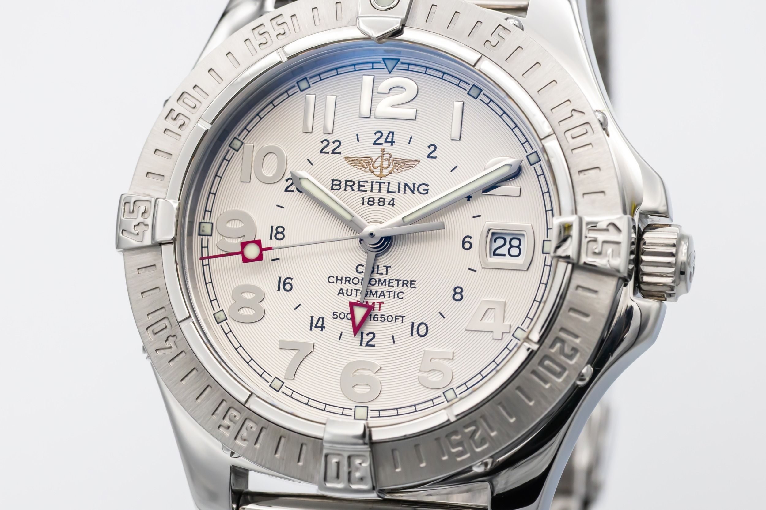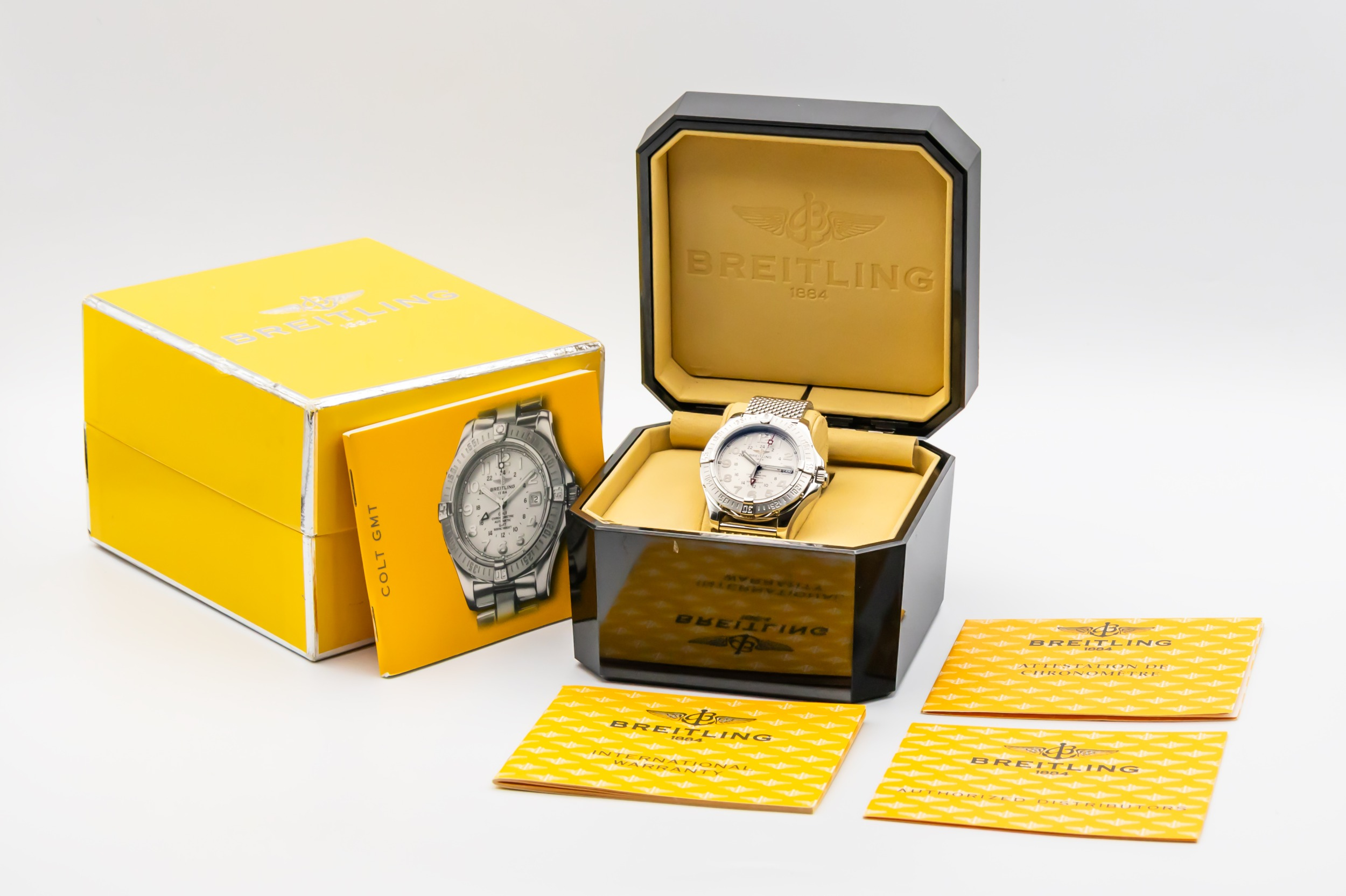 Introduced as part of Breitling’s Colt family — originally inspired by watches made for elite military units — the Colt GMT expanded the line’s practical capabilities by incorporating dual-time functionality suited to global travellers. The Colt range is known for its solid build quality, precision chronometer-certified movements, and unmistakable Breitling presence.