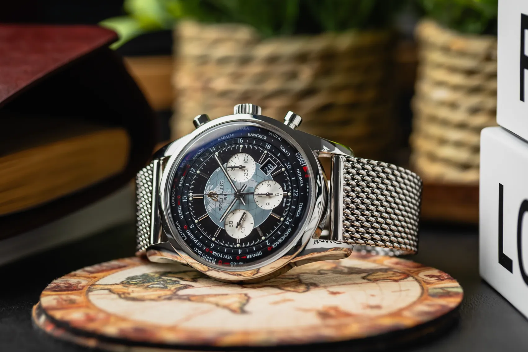 The Transocean Unitime was introduced in 2012 as part of Breitling’s more refined, dress-oriented collection, combining elegant design with the in-house calibre B05 world-time chronograph movement.