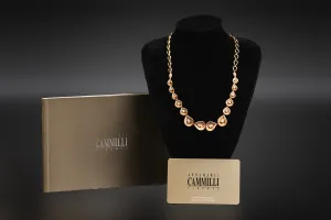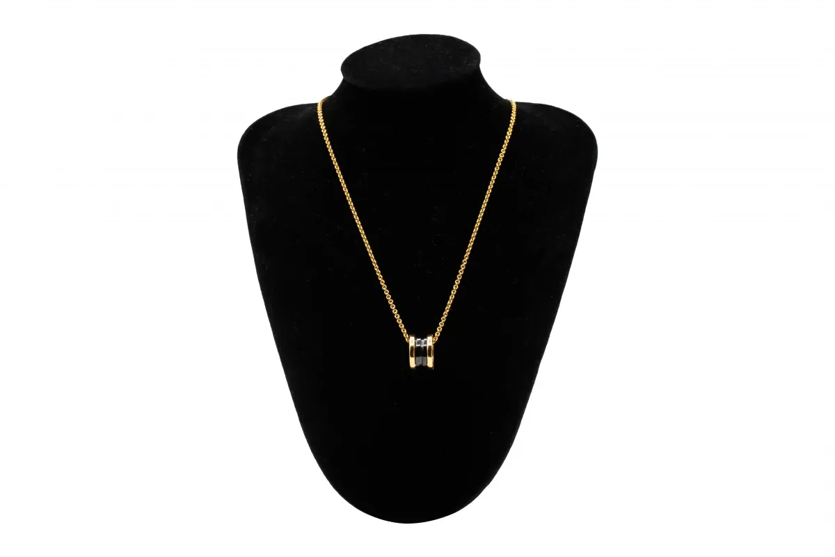 This striking Bulgari B.zero1 necklace is crafted in 18ct rose gold and paired with contrasting black ceramic, showcasing the brand’s signature blend of bold design and Italian elegance.