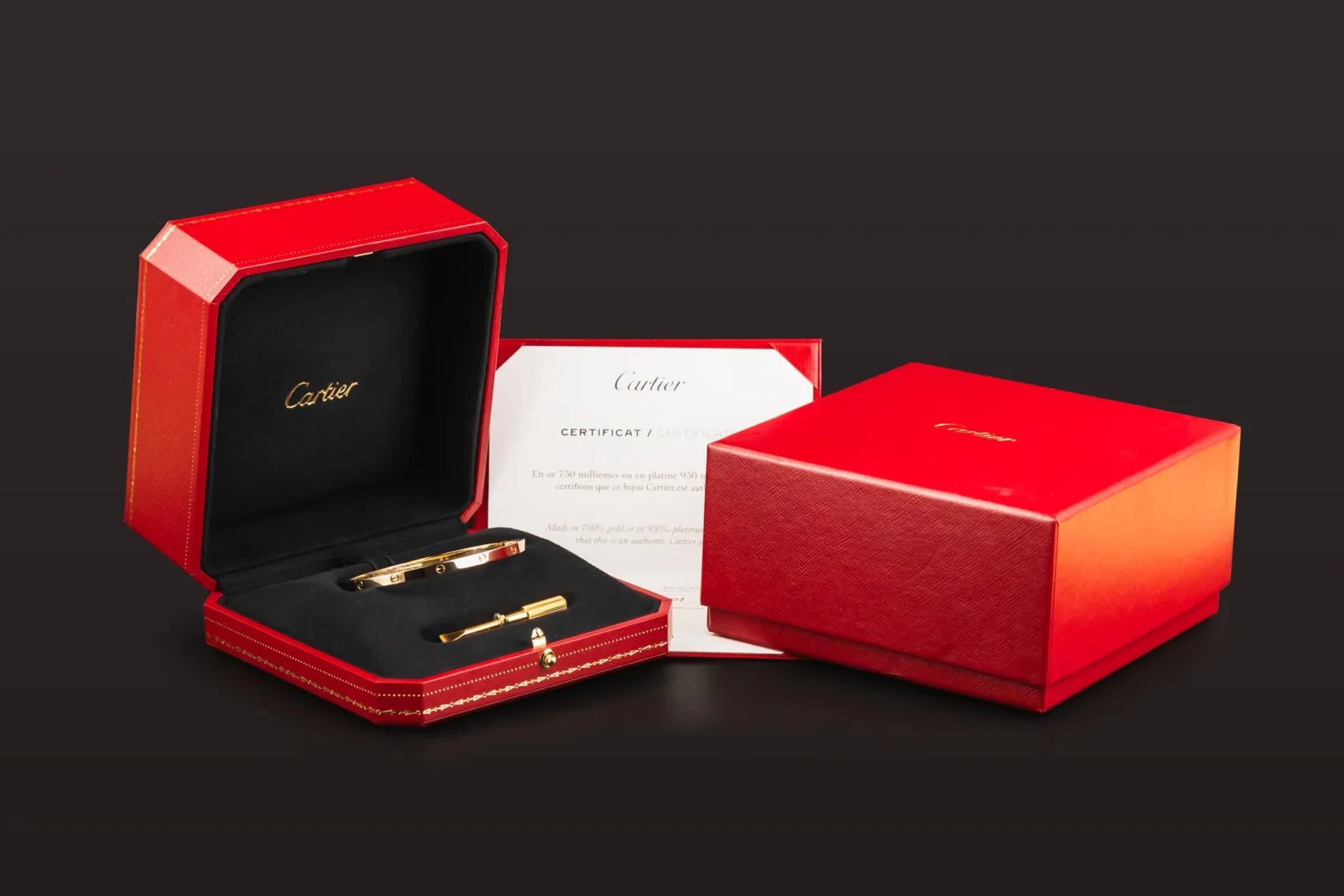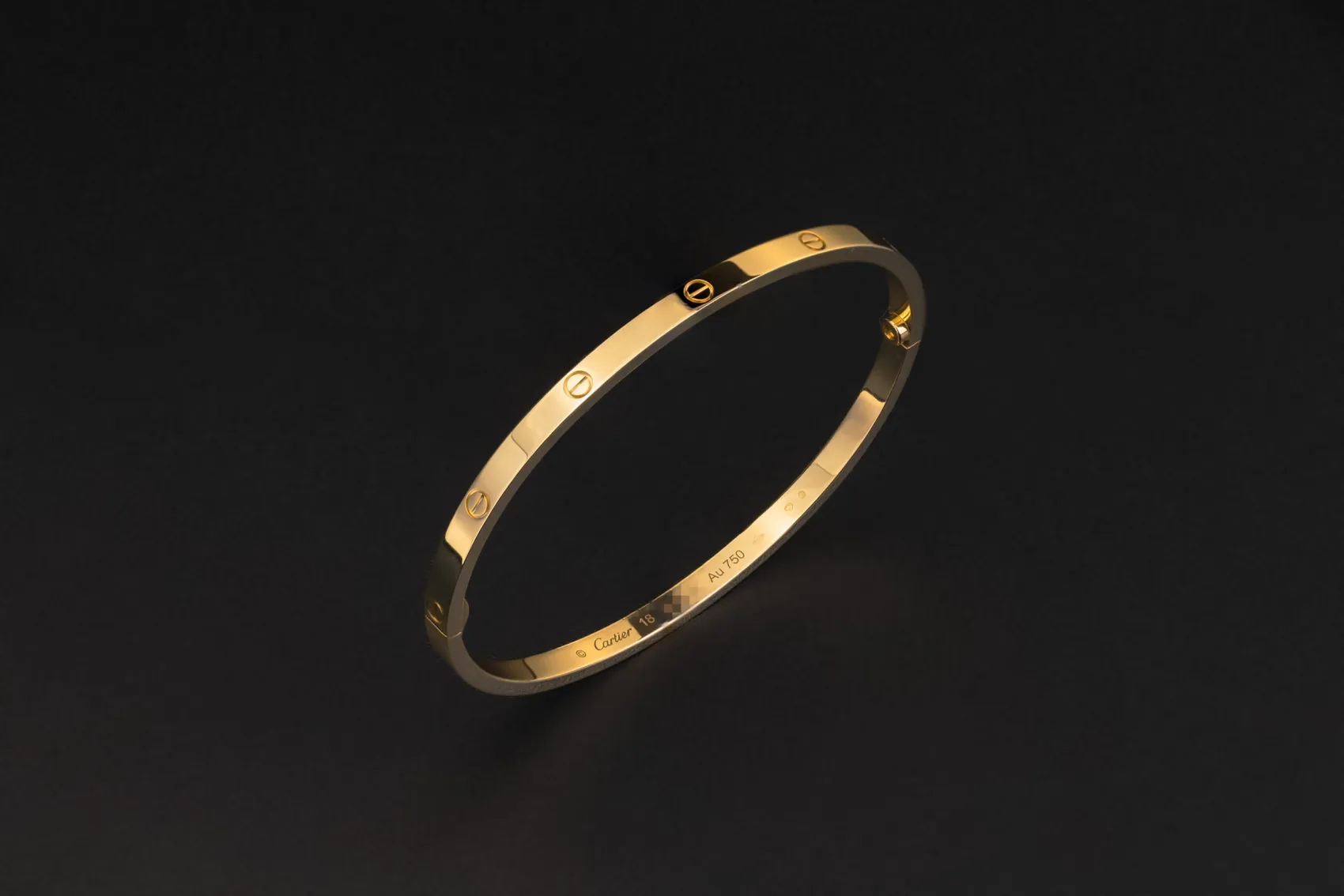 finance this from £93 p/m call the shop Read about our Limited Lifetime WarrantyThis iconic Cartier LOVE bracelet is crafted in 18ct yellow gold (750/1000) and features the unmistakable screw motif first introduced in New York in 1969.