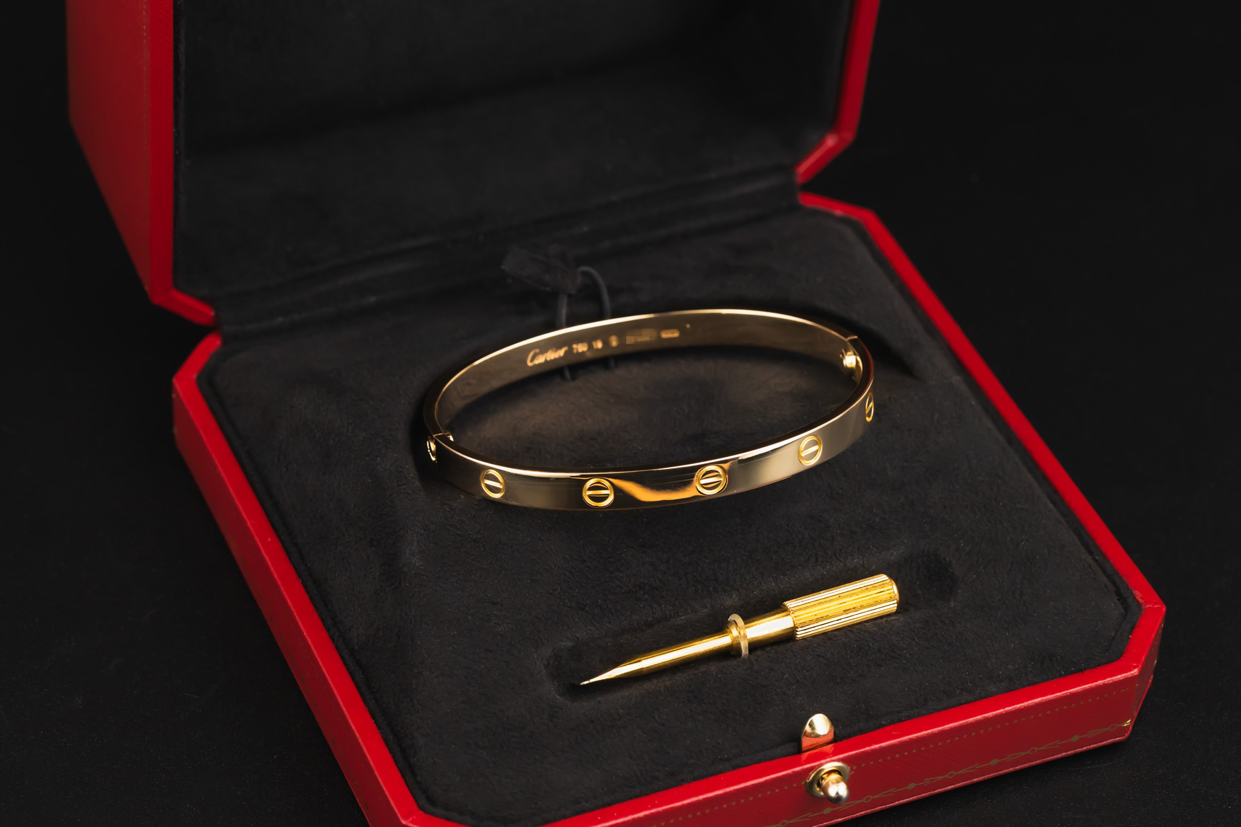 This iconic Cartier LOVE bracelet is crafted in 18ct yellow gold (750/1000) and features the instantly recognisable screw motif first introduced in New York in 1969.