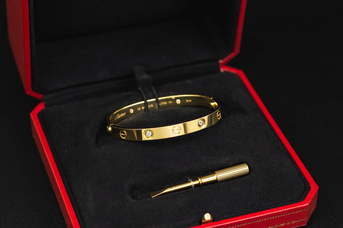 The bangle is secured with Cartier’s signature functional screws and comes complete with the original screwdriver, highlighting the bond and craftsmanship behind this timeless piece.