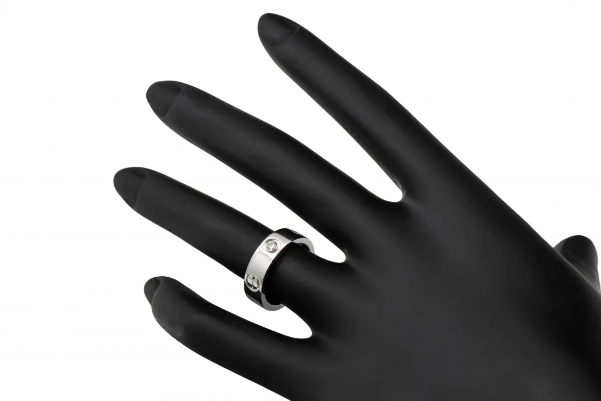The iconic Cartier LOVE ring, crafted in platinum (PT950), is a symbol of everlasting devotion. This elegant design is adorned with a brilliant-cut diamond totalling 0.07ct.