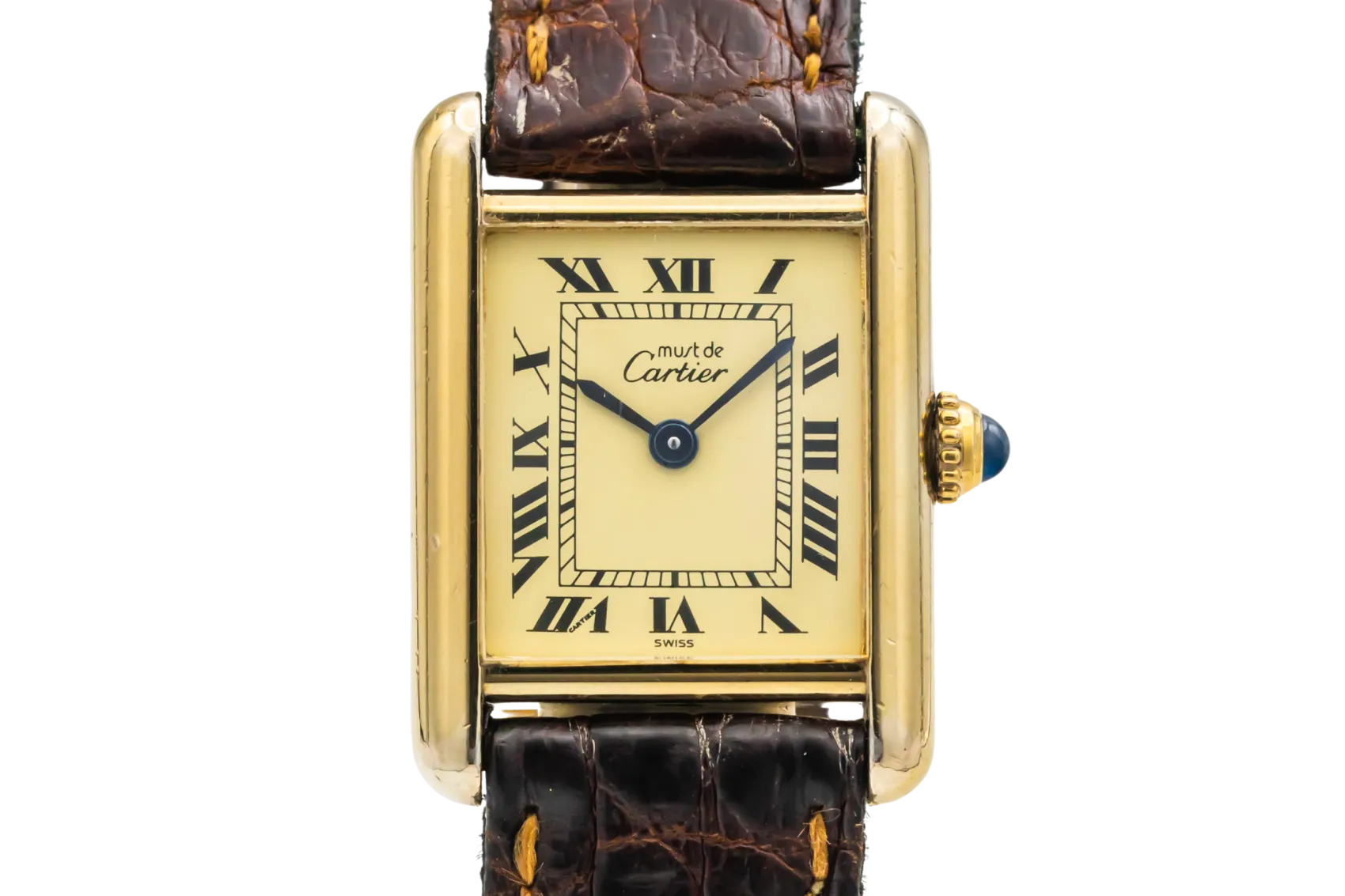 The Cartier Tank was first introduced in 1917 and remains one of the most iconic watch designs ever created. The Vermeil models offer the classic Tank aesthetic with a gold-plated finish over silver, making them a popular vintage choice.