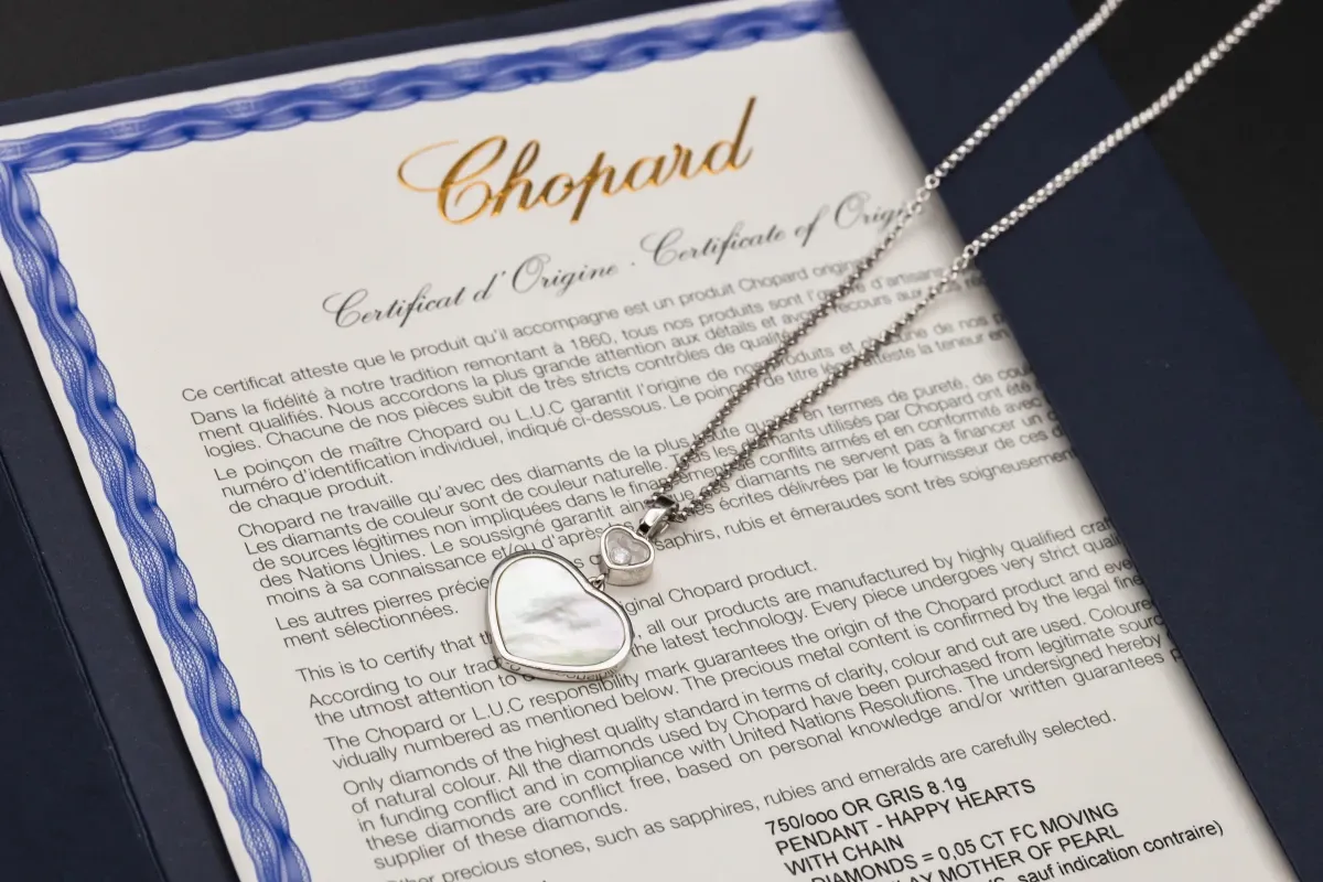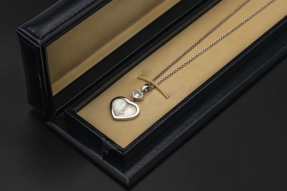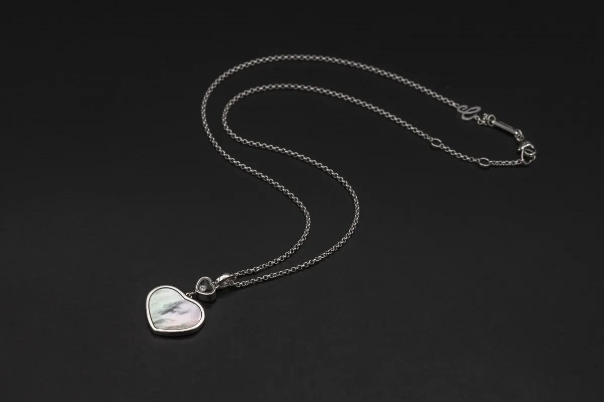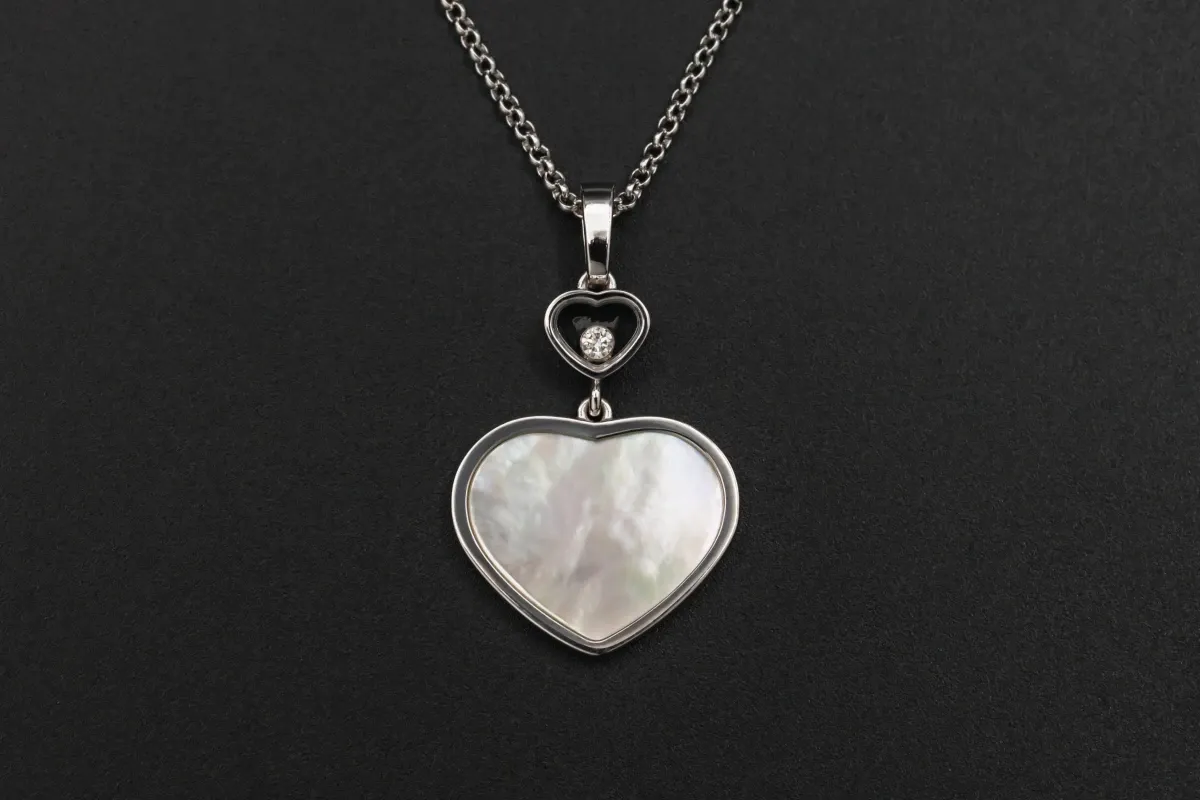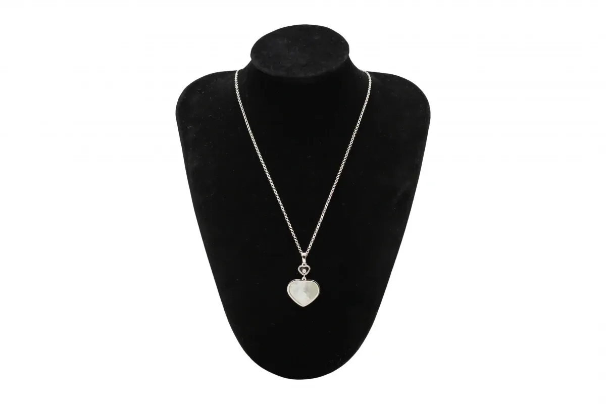 The Chopard Happy Hearts Pendant is an elegant 18ct white gold necklace