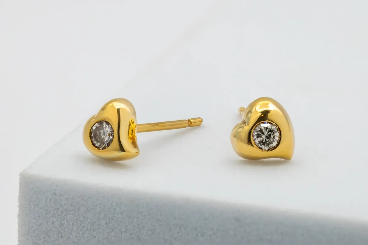 These beautiful 9ct yellow gold heart-shaped stud earrings feature diamonds totaling 0.20 carats.