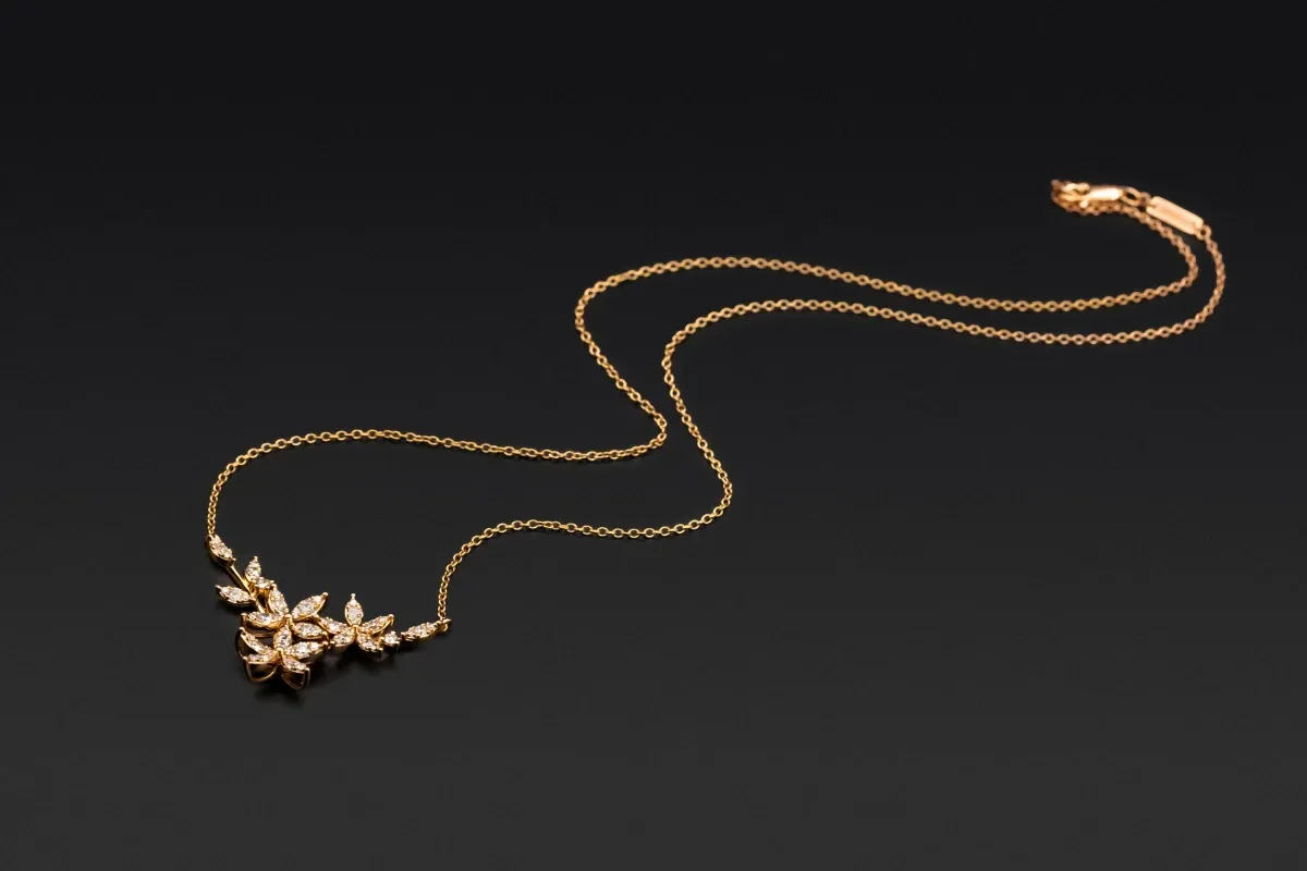 Set within the warm embrace of 18ct rose gold, the diamonds' brilliance is further enhanced, creating a necklace that radiates elegance and sophistication.
