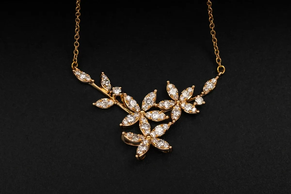 18ct Rose Gold Diamond Flower Necklace App 1cts