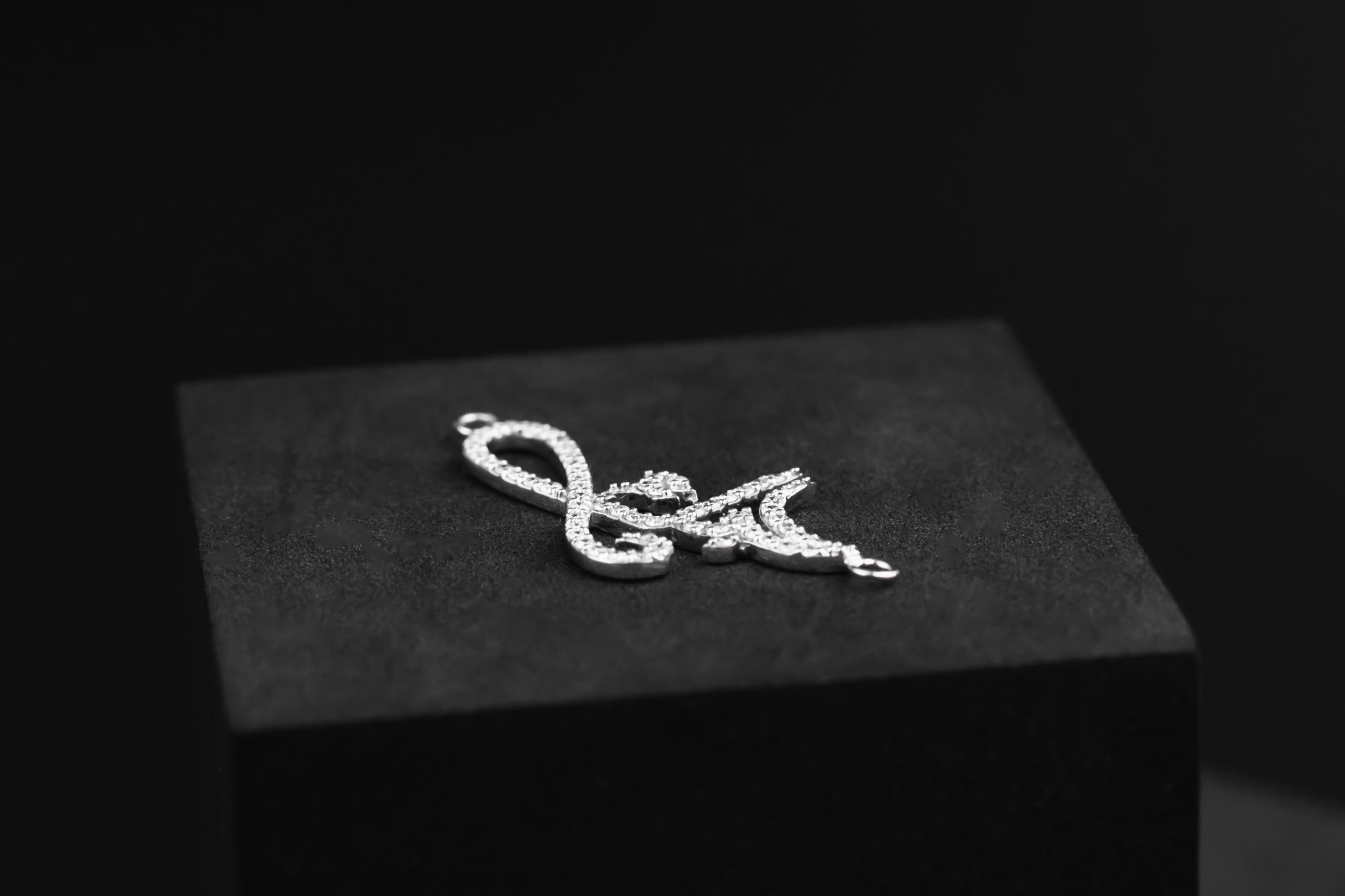 This refined 9ct white gold pendant features the Arabic inscription for “I Love You”, beautifully set with 0.33ct of natural round brilliant cut diamonds, graded H colour with SI clarity for clean, expressive sparkle.