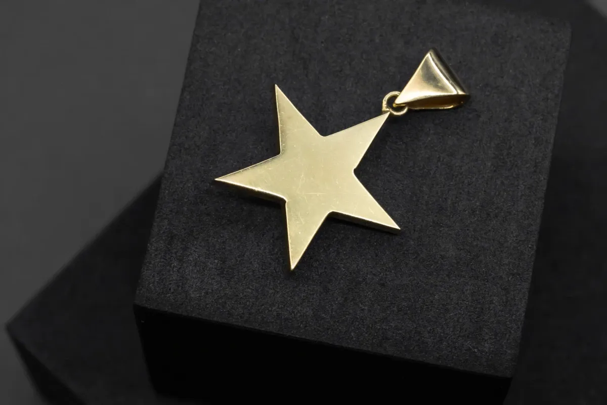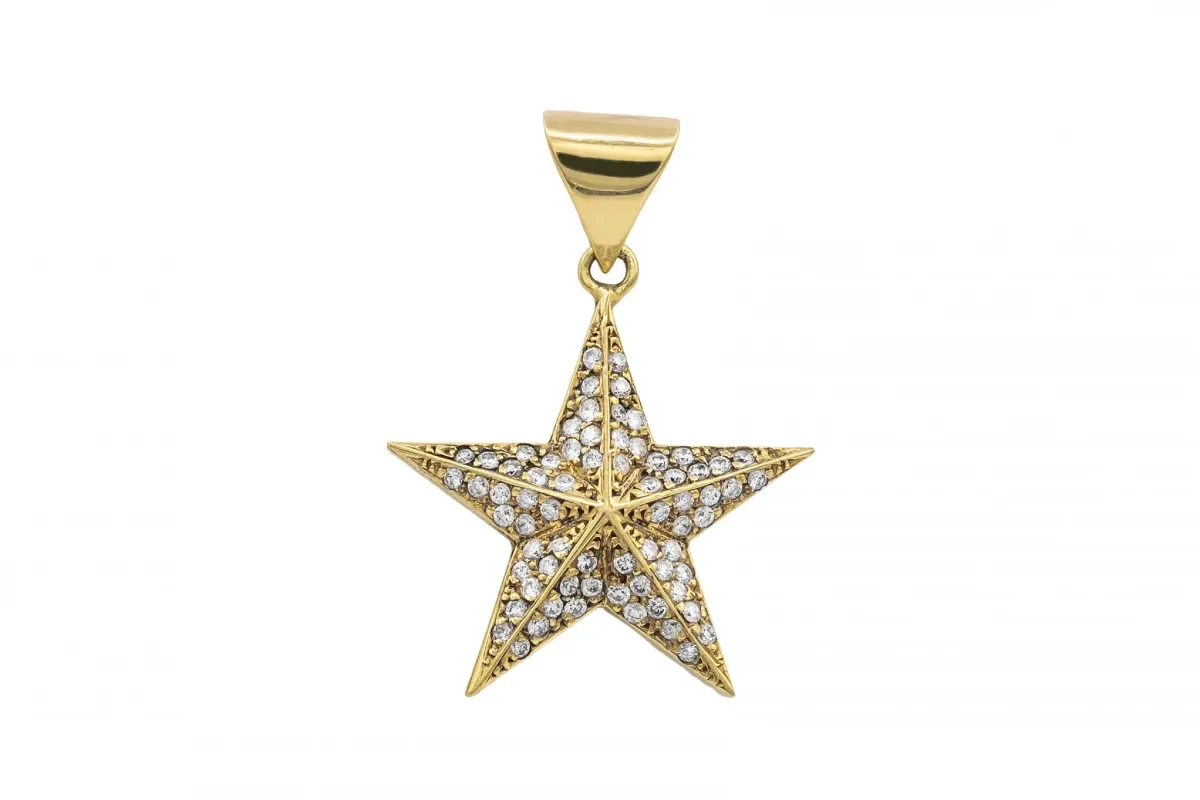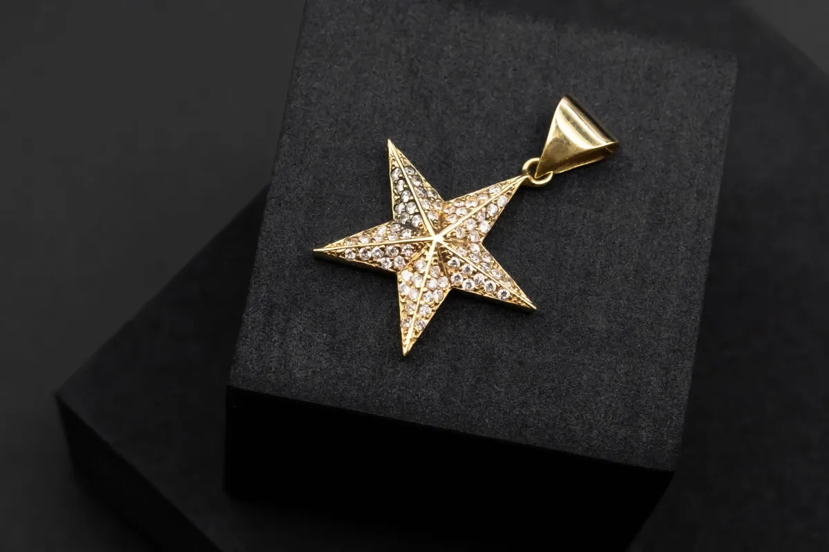Exquisite pave-set diamond star pendant, a true embodiment of celestial beauty, crafted in 14ct yellow gold. This pendant is a stunning addition to any ensemble, showcasing the perfect blend of elegance and charm.