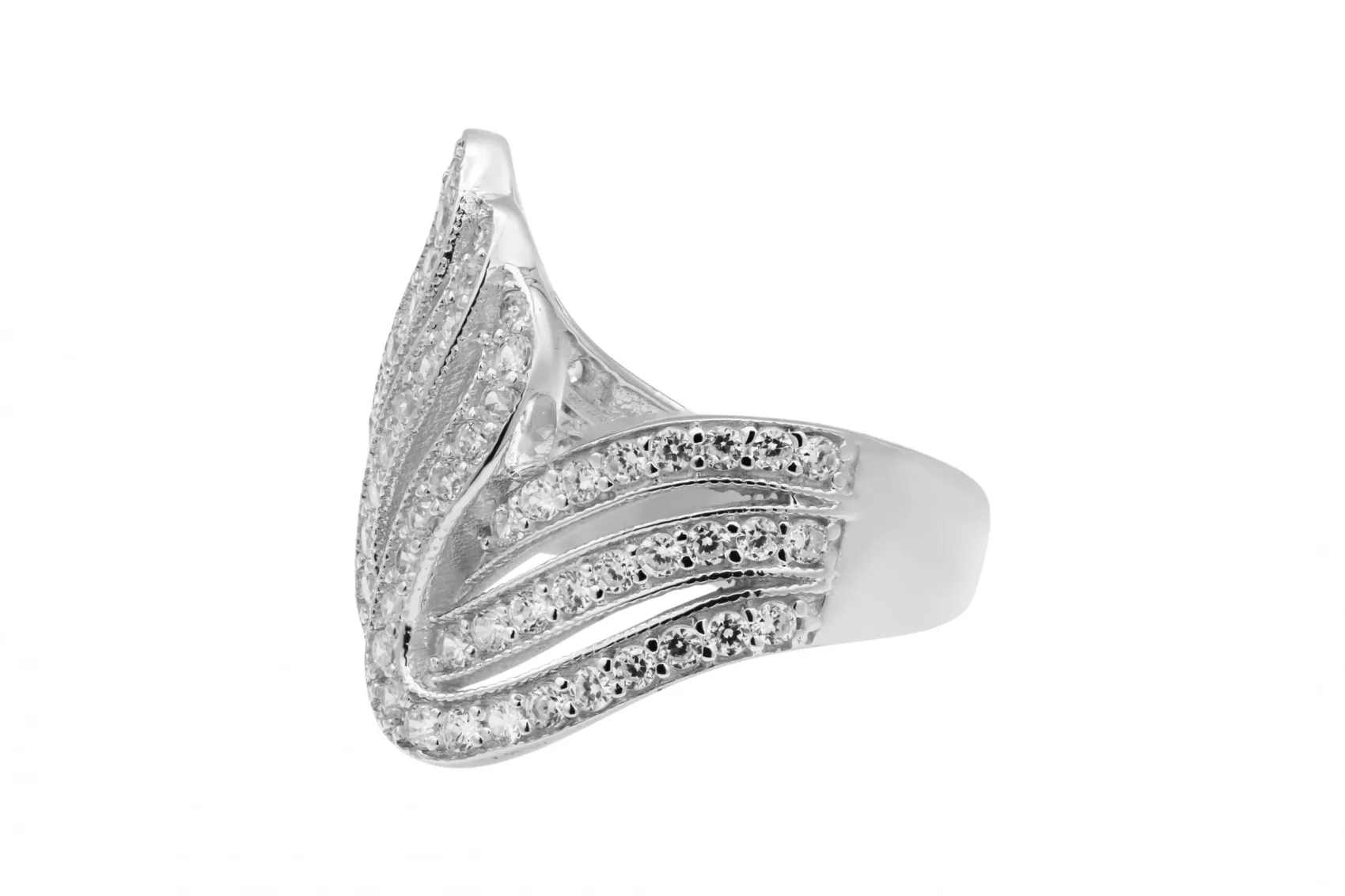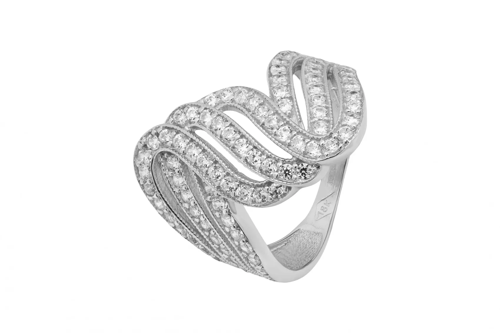 18ct White Gold Multi Row Pave Set Diamond Wave Ring 0.82ct 6.7g