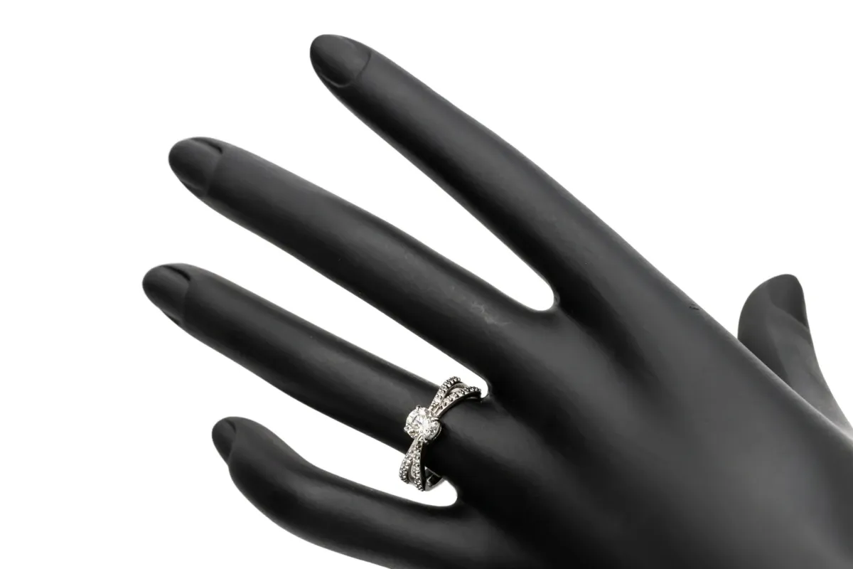 The center diamond is 0.70ct while the 28 diamonds on the shoulders are 0.28ct. Total carat weight is 0.98ct.