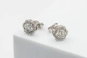 These refined 9ct white gold stud earrings are pavé set with 0.58ct of natural round brilliant cut diamonds, graded H colour with SI2 clarity for lively sparkle and visual depth.