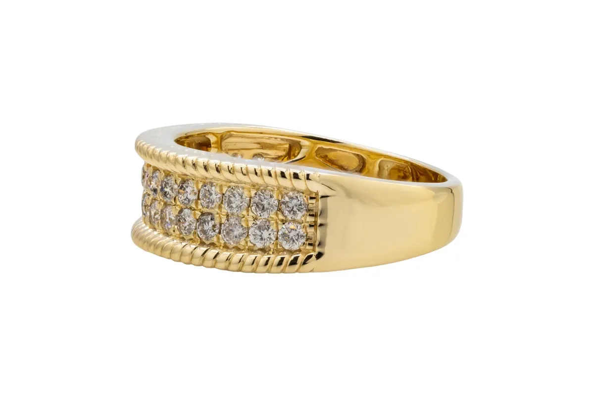This 14ct Yellow Gold Diamond Ring features two elegant rows of brilliant-cut diamonds with a total weight of 0.64ct, adding exceptional sparkle.
