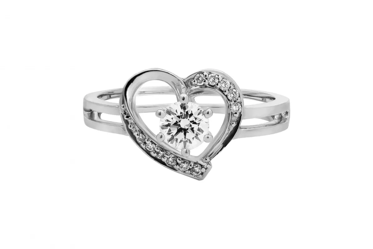 [S3297] 18ct White Gold Heart Shaped Diamond Ring 0.41ct