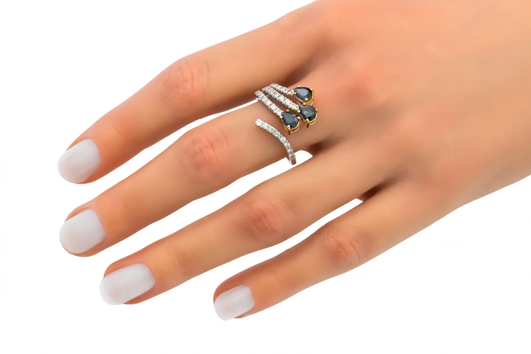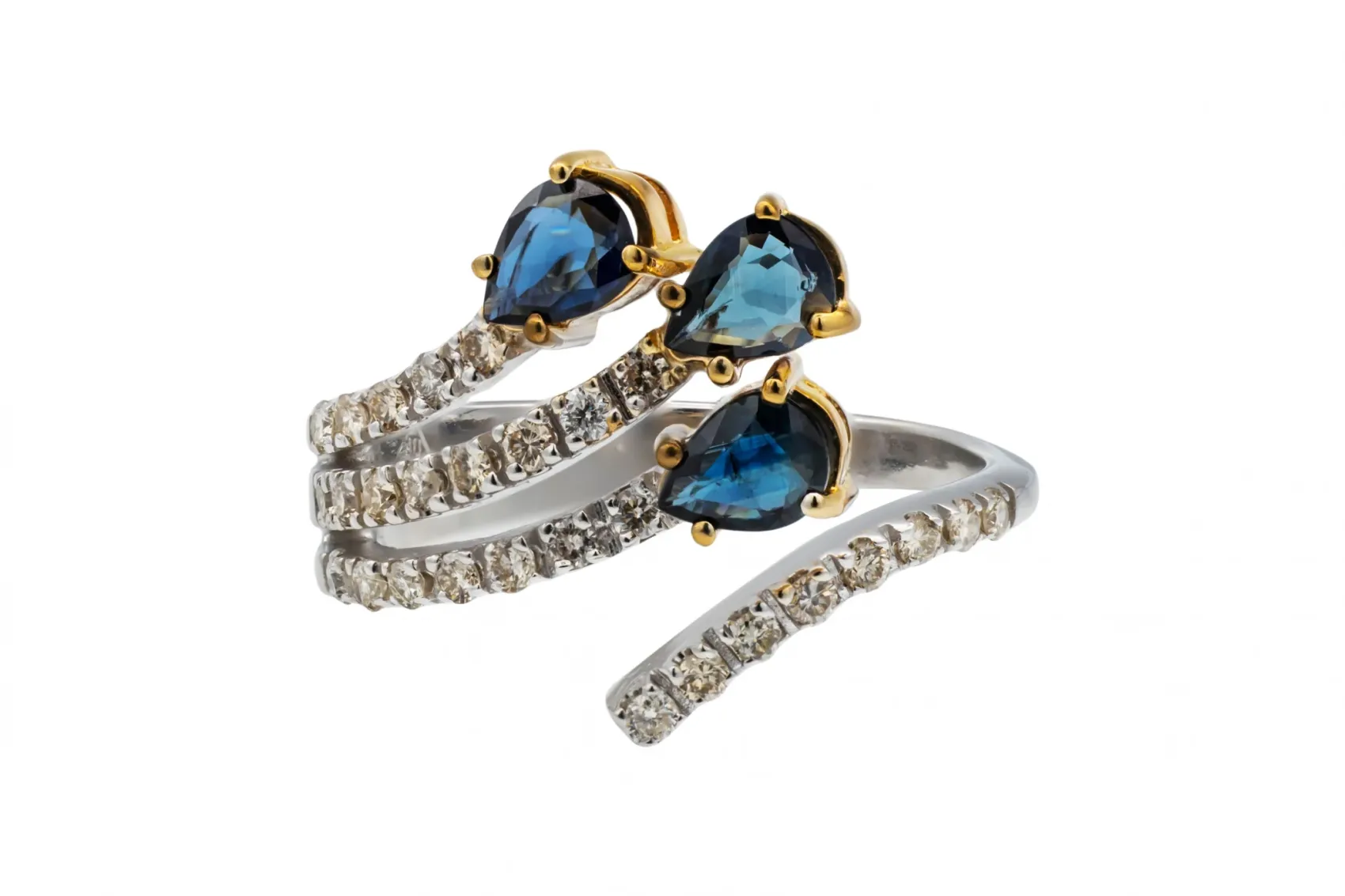 18ct White Gold Diamond & Sapphire Dress Ring – 1.29ct Sapphire & 0.34ct Diamonds