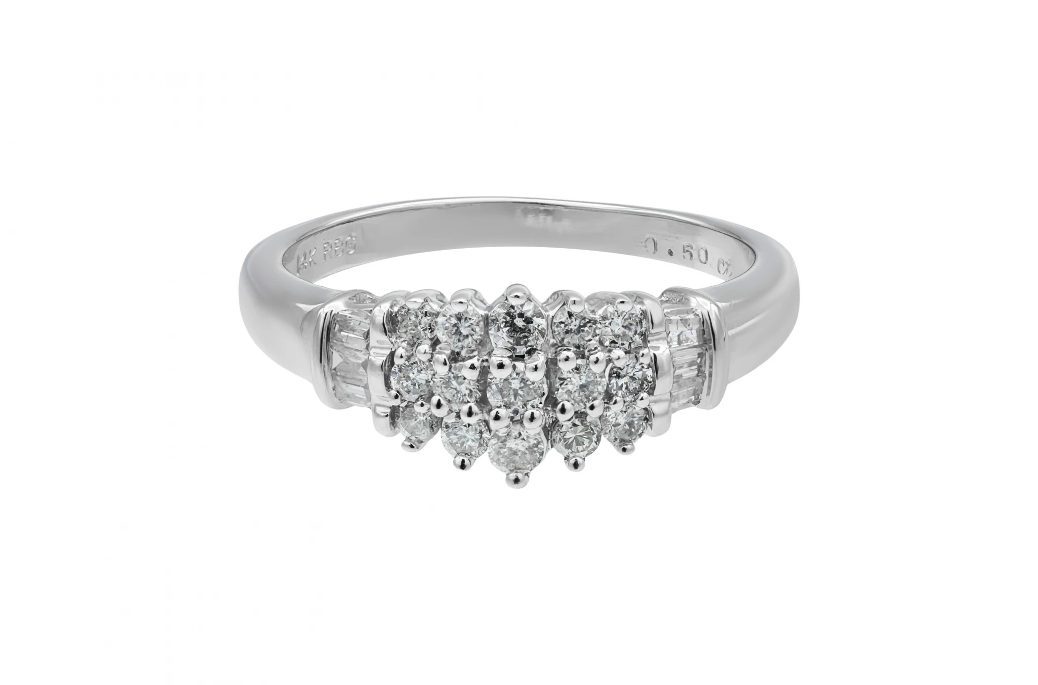 14ct White Gold Brilliant Round & Baguette Diamond Cluster Ring 0.50ct