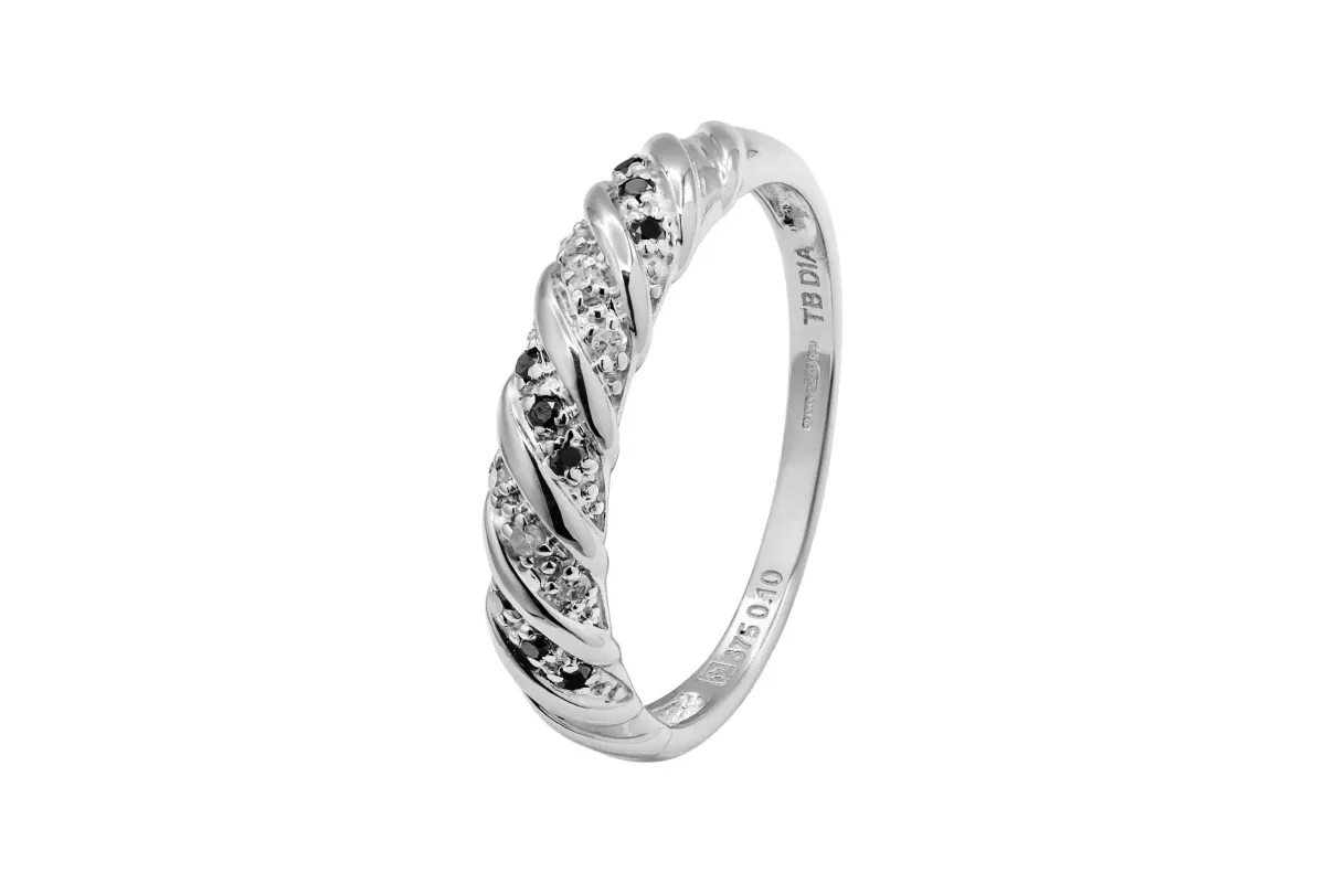 This 9ct white gold ring features a micro pavé setting with black and white diamonds totalling 0.10ct.
