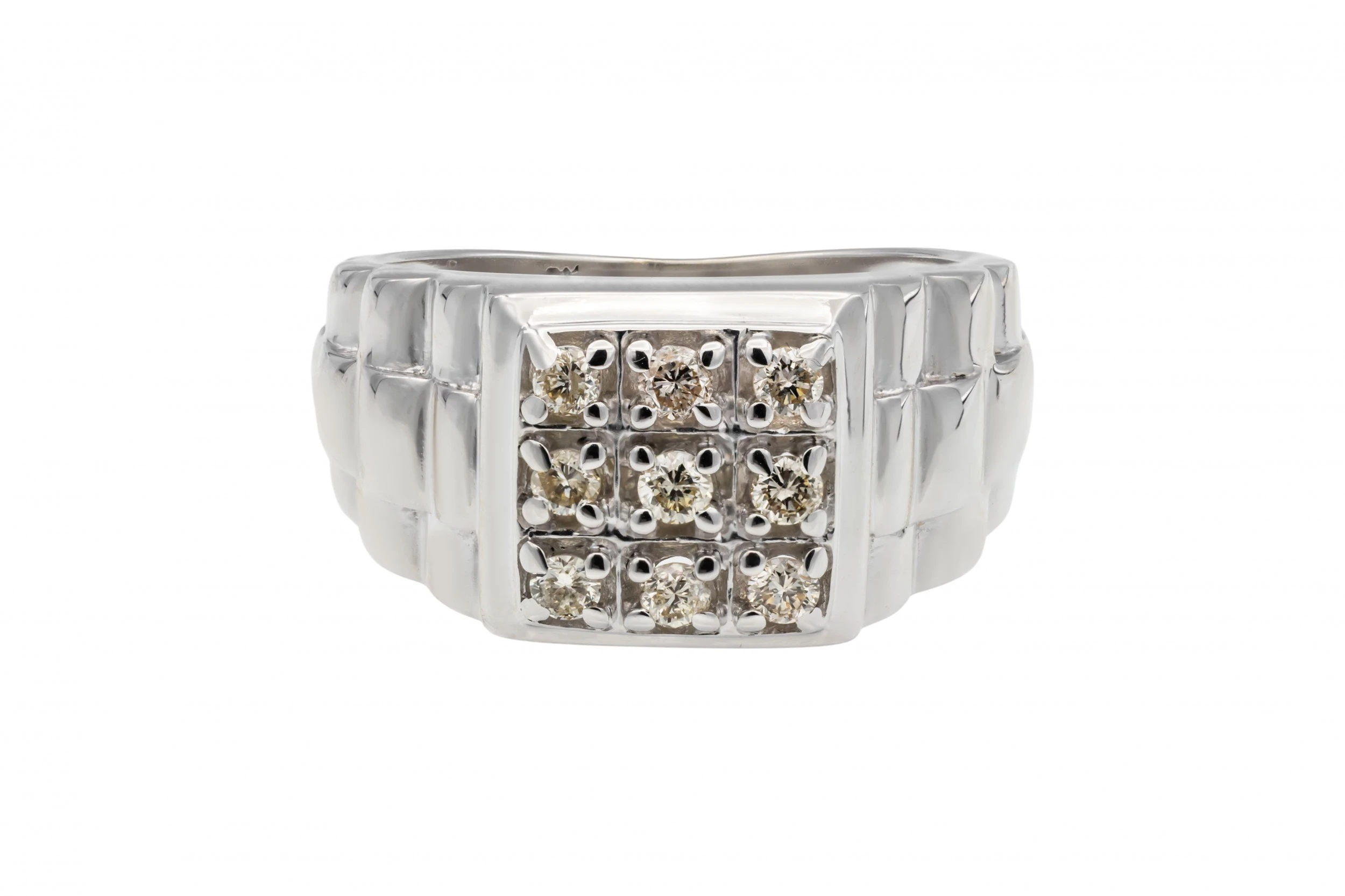 This bold 9ct white gold ring is set with 0.50ct of round brilliant cut diamonds, graded G colour with SI clarity for a bright, balanced sparkle.