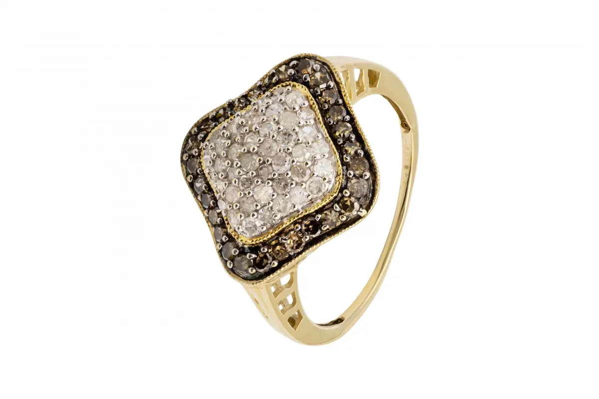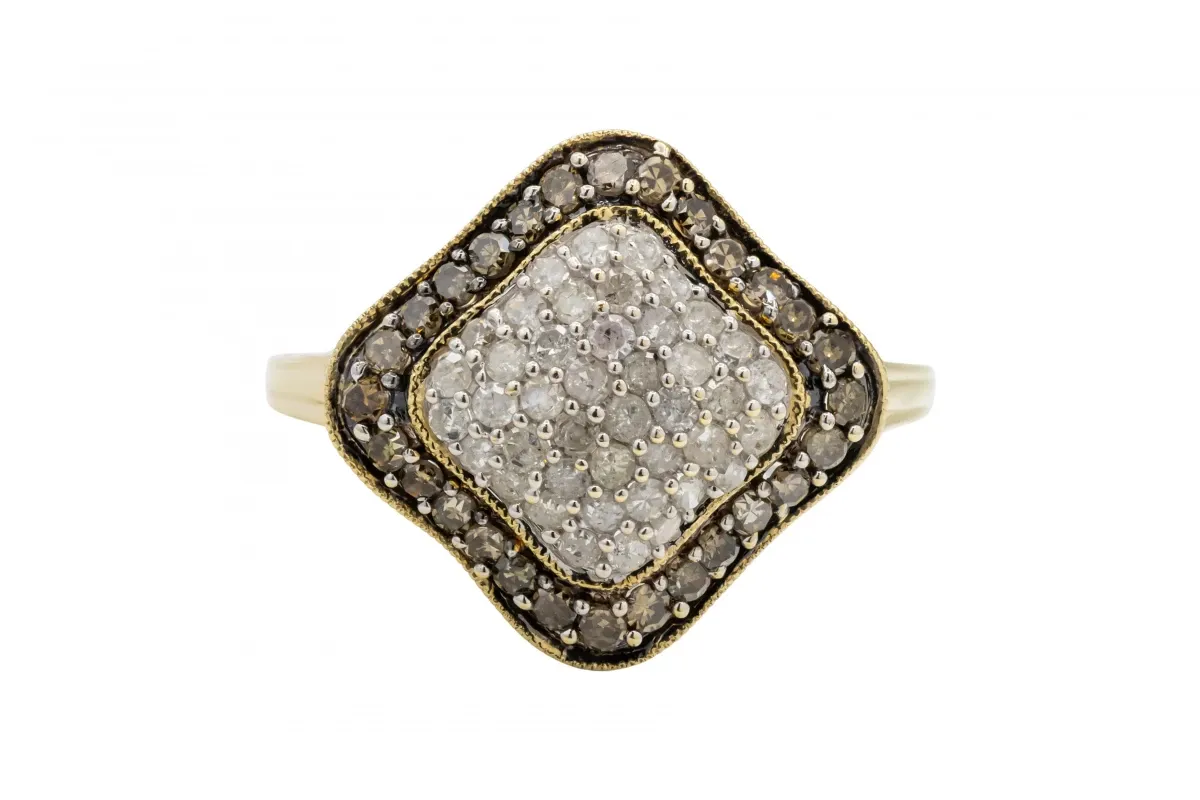 9ct Yellow Gold White And Champagne Diamond Cluster Ring 0.92ct
