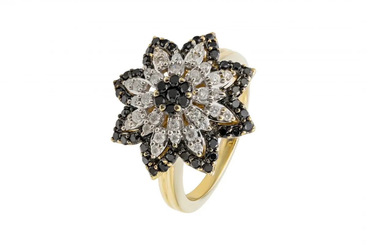 This 9ct yellow gold diamond flower ring features a stunning 0.85ct total diamond weight.