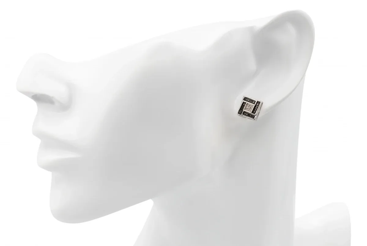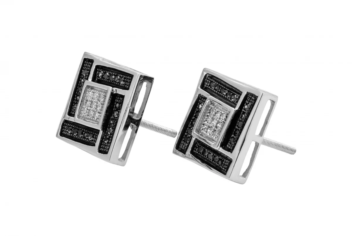 These 9ct white gold square stud earrings feature a stunning combination of white and black diamonds, totaling 0.15ct.