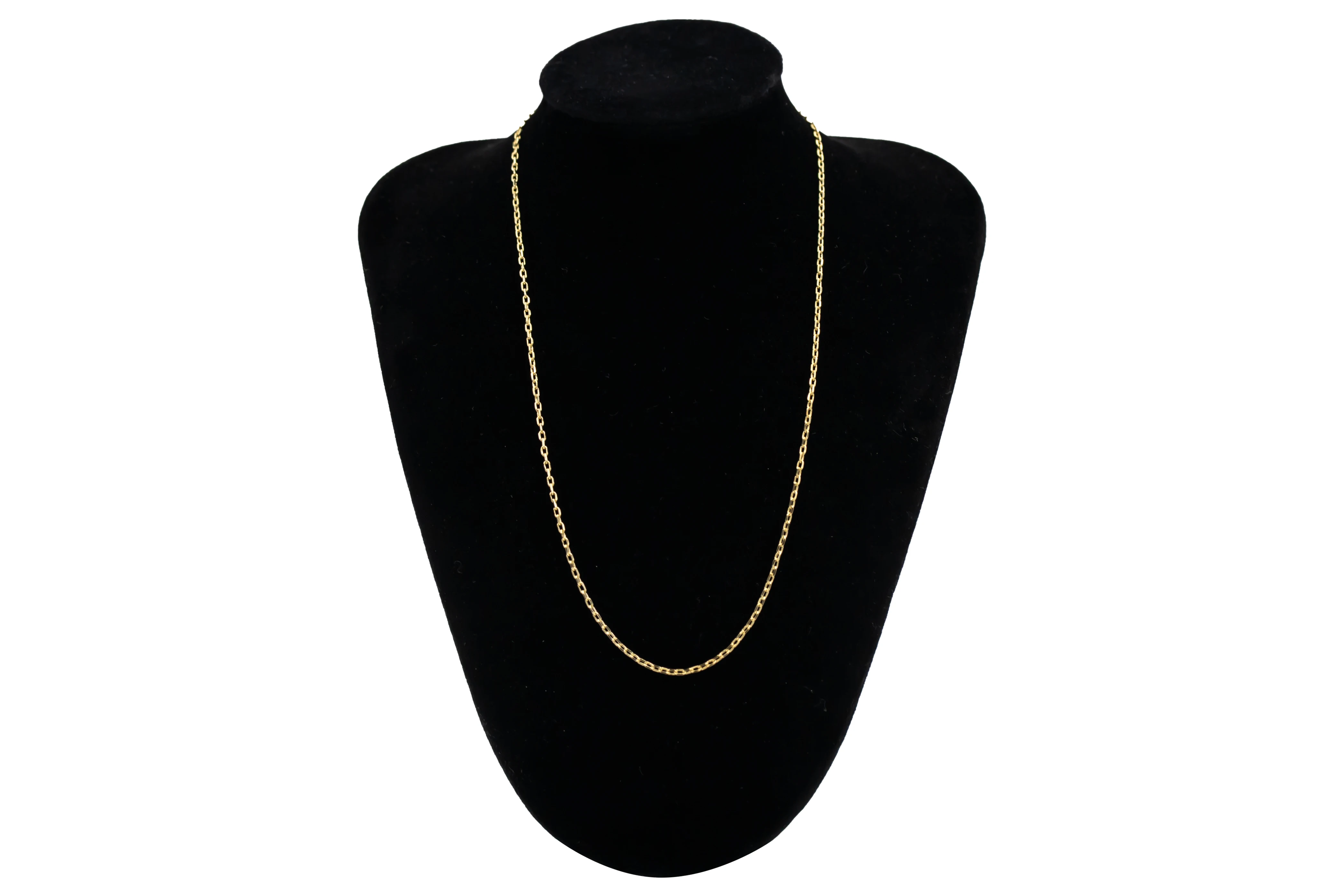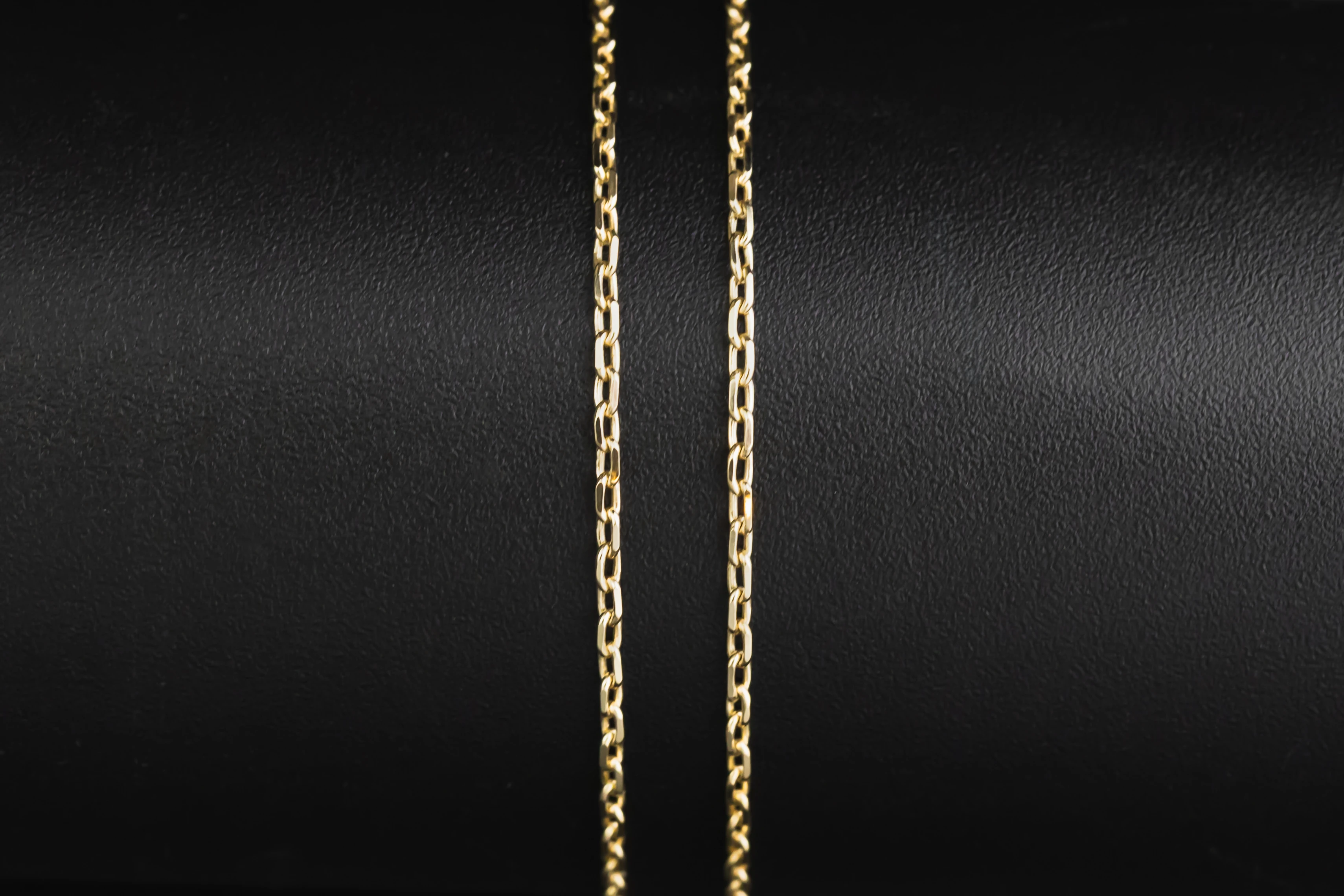 This stylish 9ct yellow gold anchor link chain features a classic maritime-inspired design, offering both strength and refined character. Measuring 16 inches in length and weighing 2.9g, it sits comfortably on the neckline with a polished finish that reflects light beautifully.