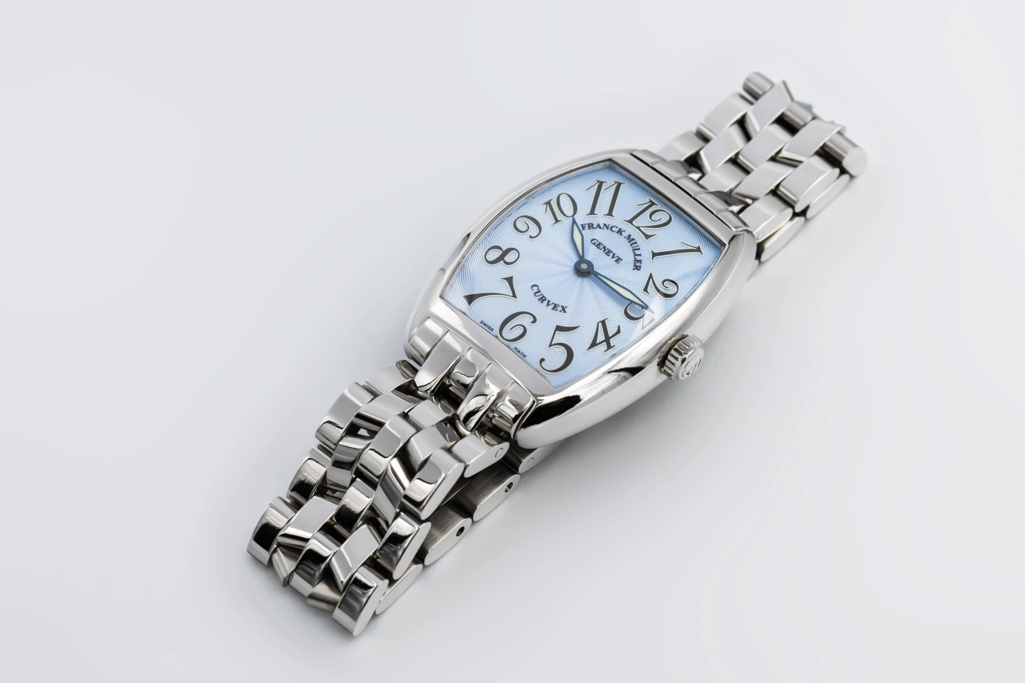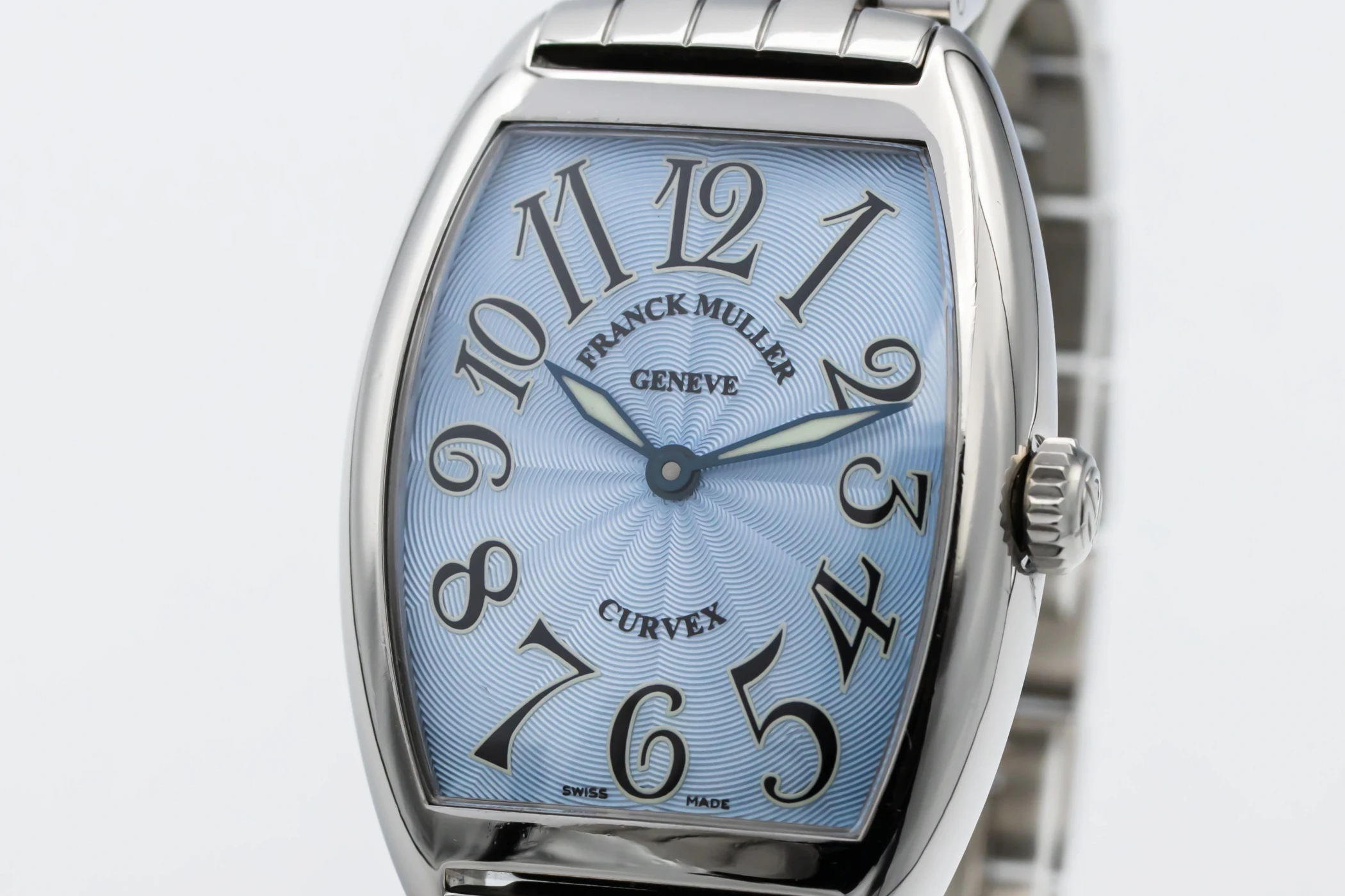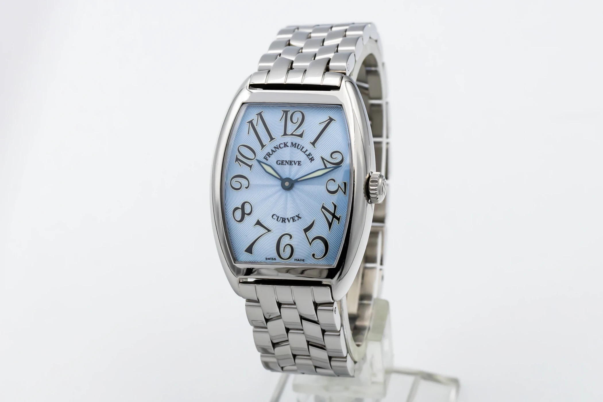 finance this from £37.46 p/m call the shop Read about our Limited Lifetime WarrantyThis circa 2000s Franck Muller Cintree Curvex 29mm features a blue dial with arabic numerals and a stainless steel strap and bezel.