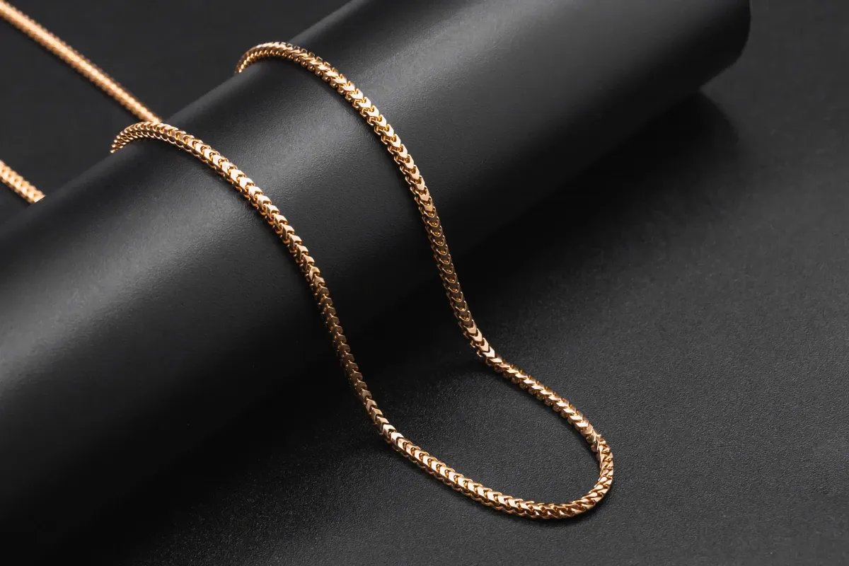 This 9ct rose gold Franco Chain is a delicate yet stylish accessory that adds a touch of sophistication to any ensemble.