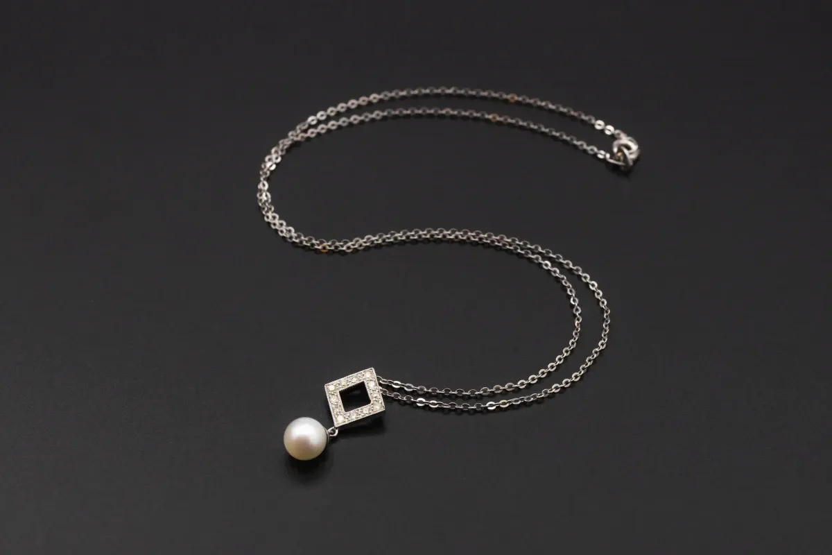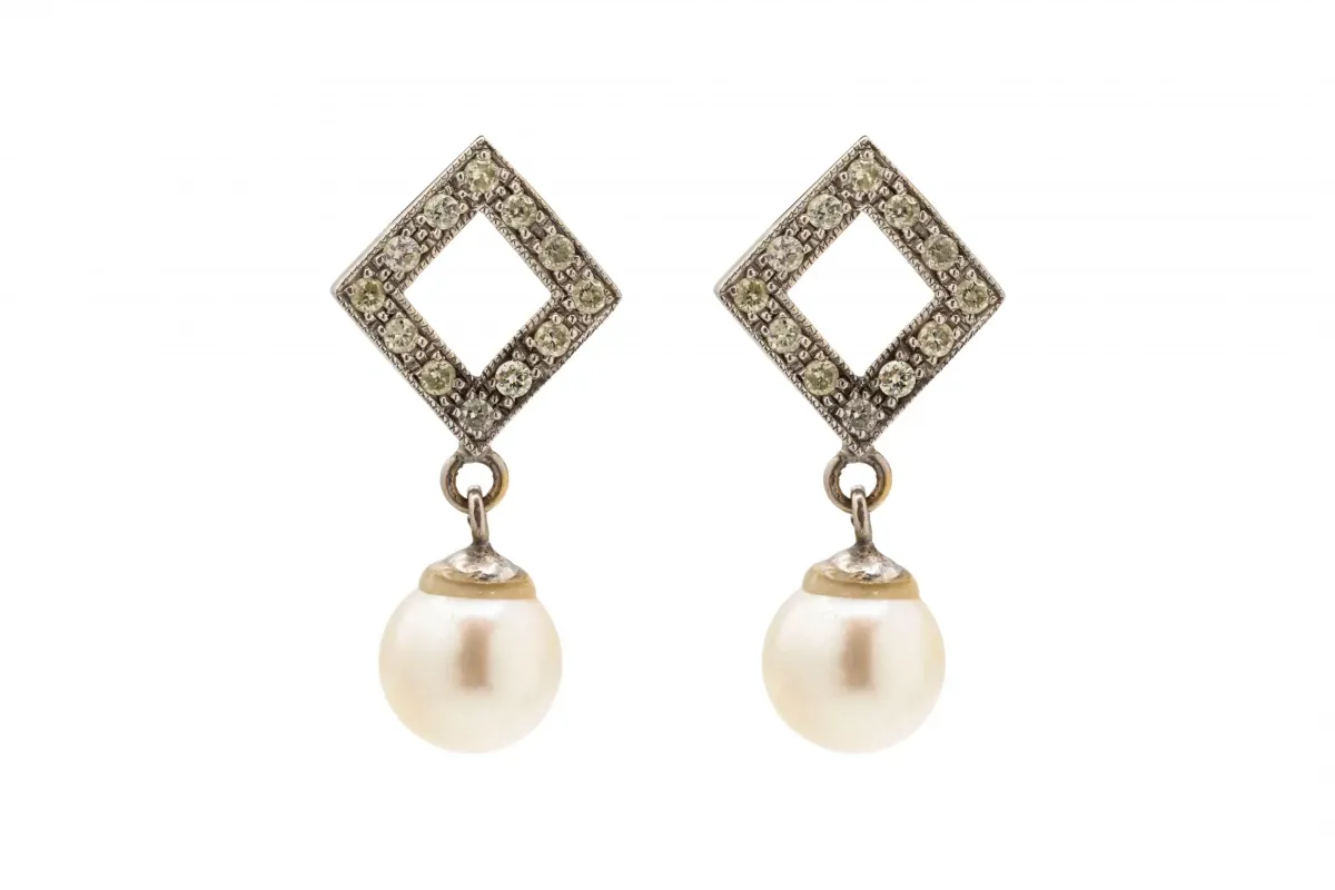 Weighing 6.6g, the elegant design offers a sophisticated touch with the sparkling diamonds perfectly accentuating the natural beauty of the pearls.