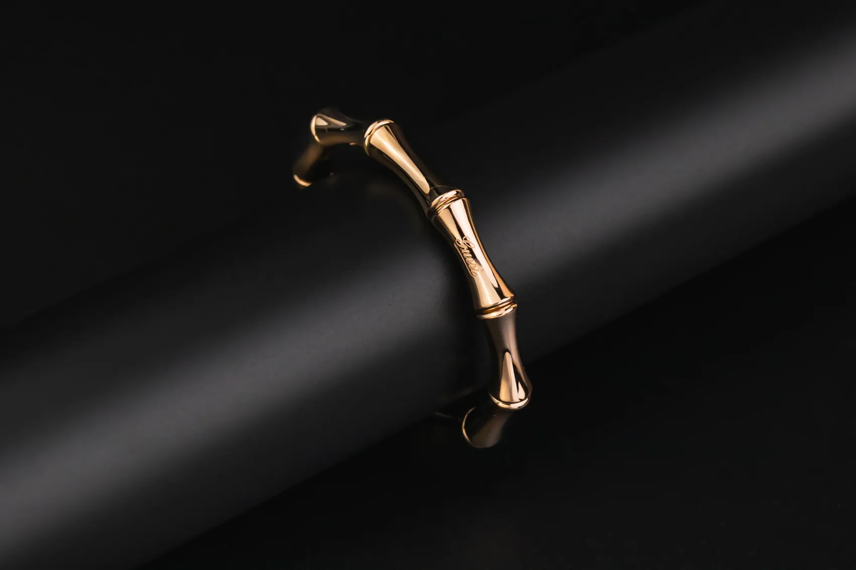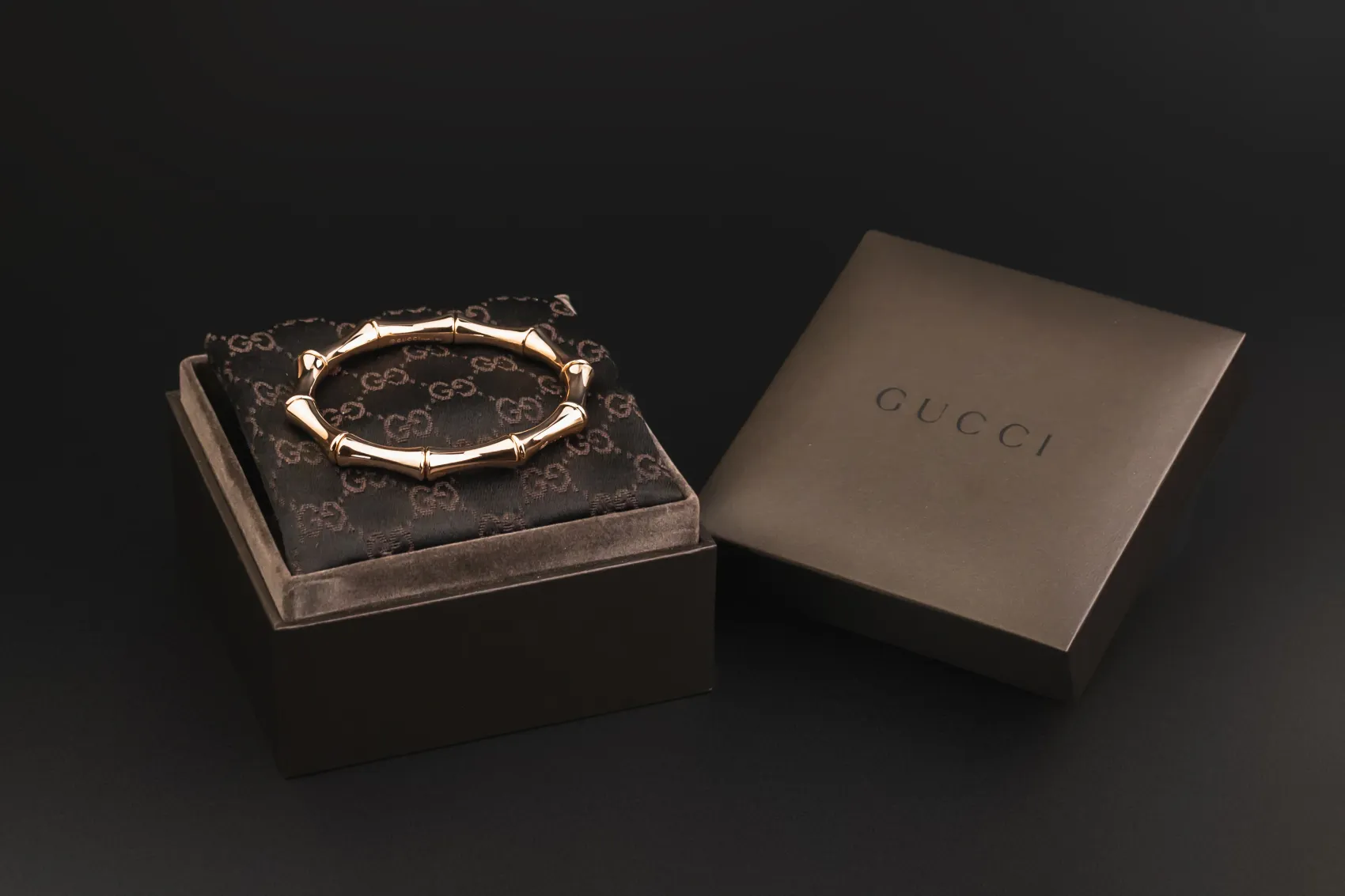The bracelet is fully hallmarked with the Gucci signature, ®, Made in Italy, Au750, Italian registry mark, and size 17 stamp, reinforcing its authenticity and heritage. With its warm rose gold tone and fluid bamboo form, this bracelet transitions effortlessly from everyday wear to elevated styling, making it a refined addition to any luxury jewellery collection.