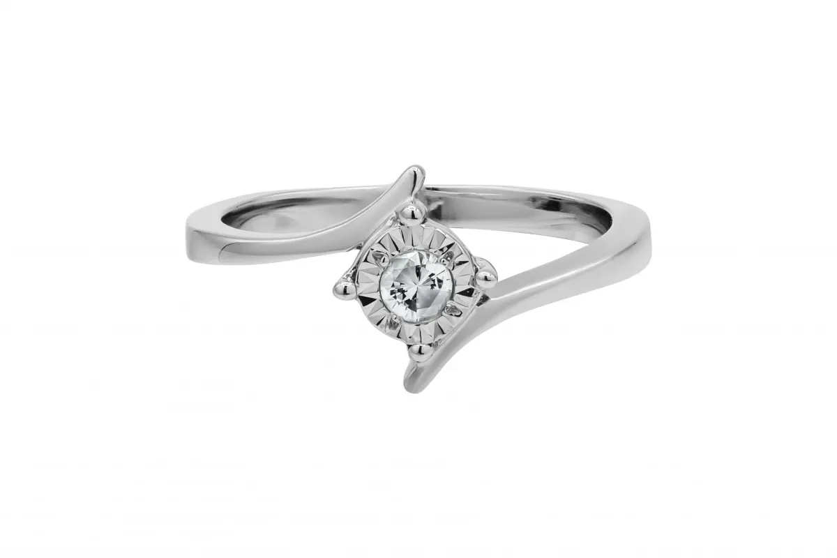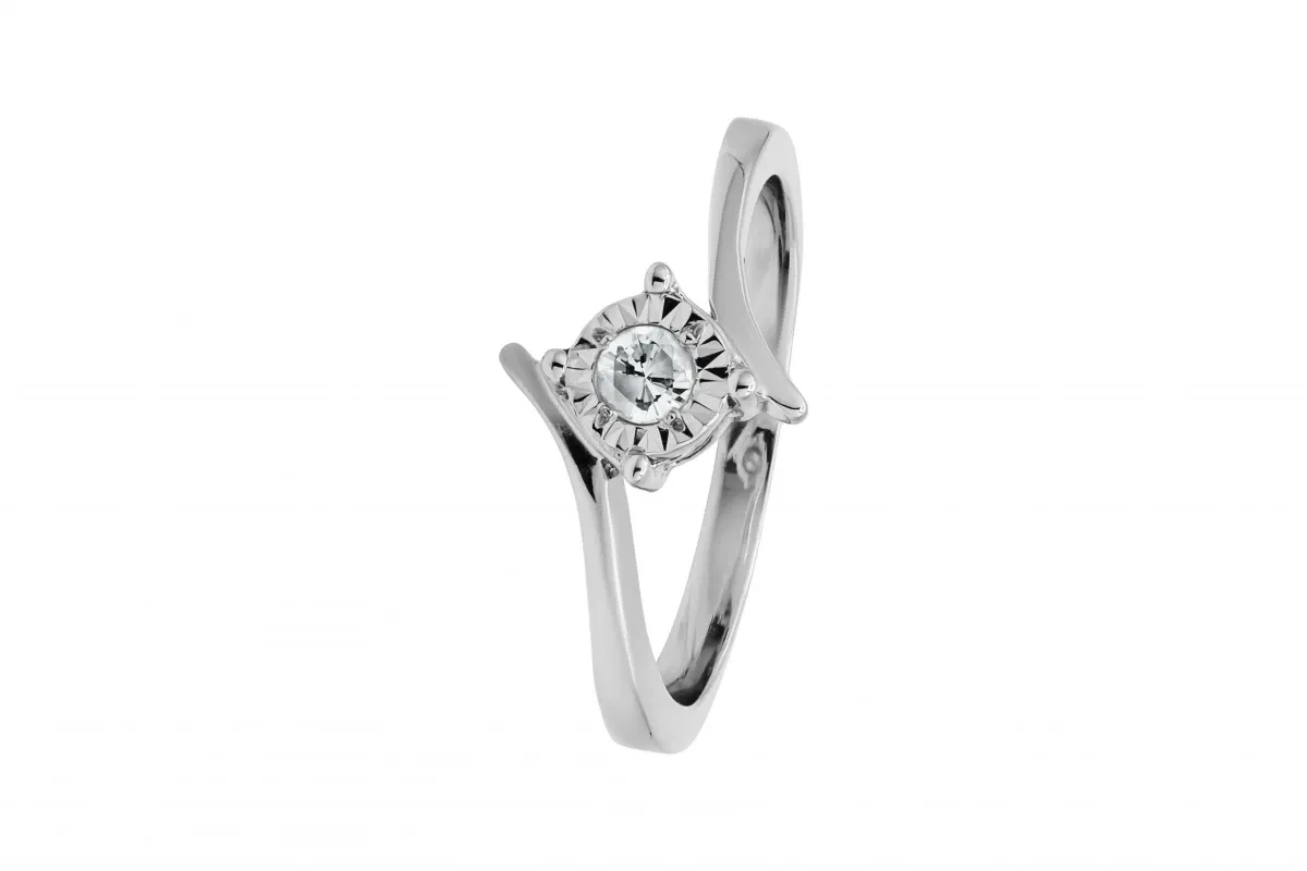 This elegant 9ct white gold engagement ring features a 0.10ct round brilliant cut diamond, graded I colour and SI1 clarity, offering a subtle sparkle that's perfect for those who appreciate understated beauty.