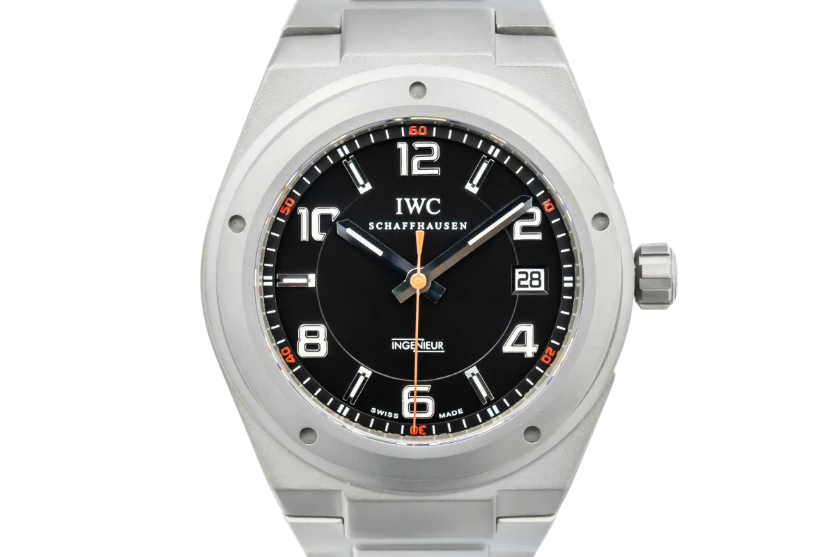 This 2007 IWC Ingenieur AMG 42mm features a black dial with arabic