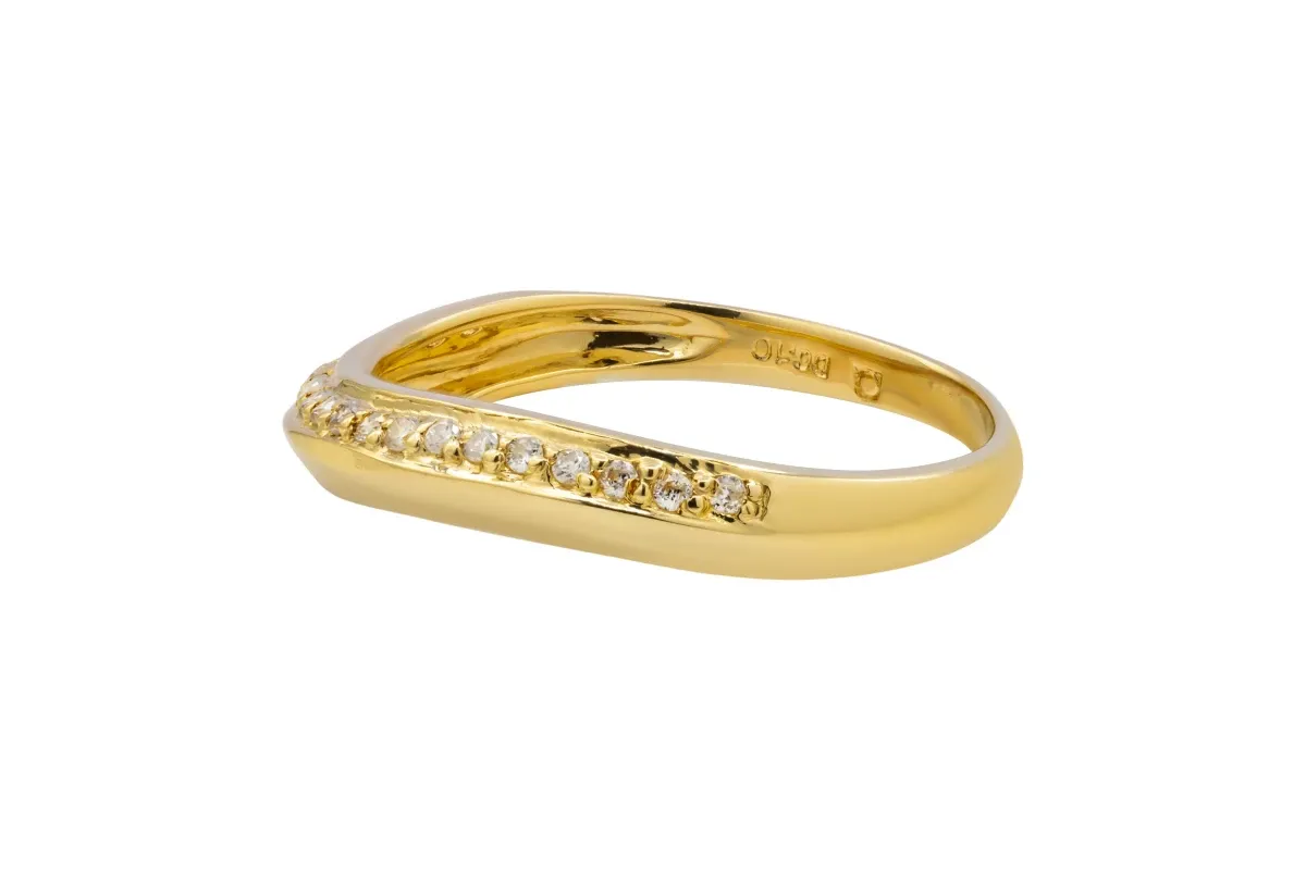 Crafted in 18ct yellow gold, this elegant shaped wedding band is set with 0.10ct of diamonds, offering a subtle sparkle.