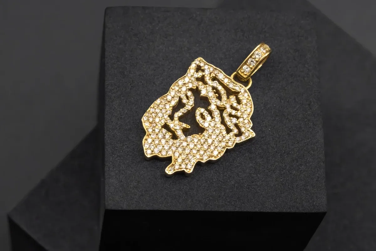 14ct Yellow Gold Cut Out Jesus Head Pendant 1.95cts