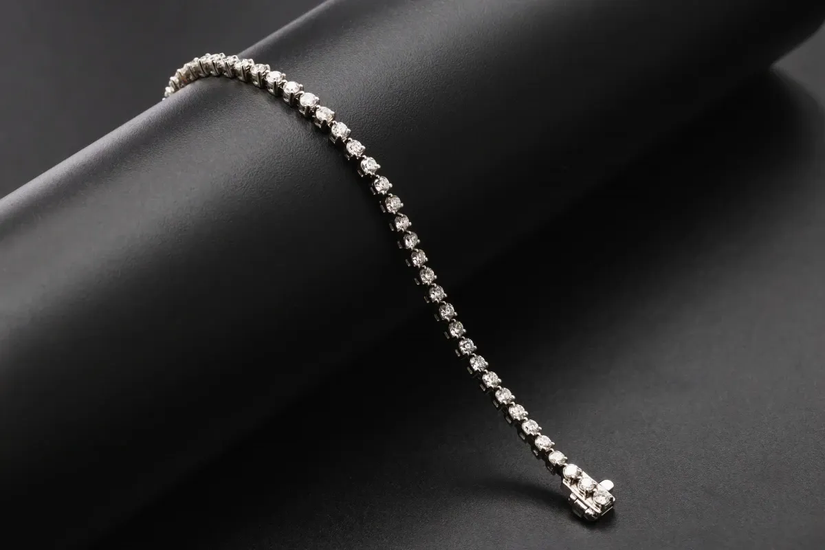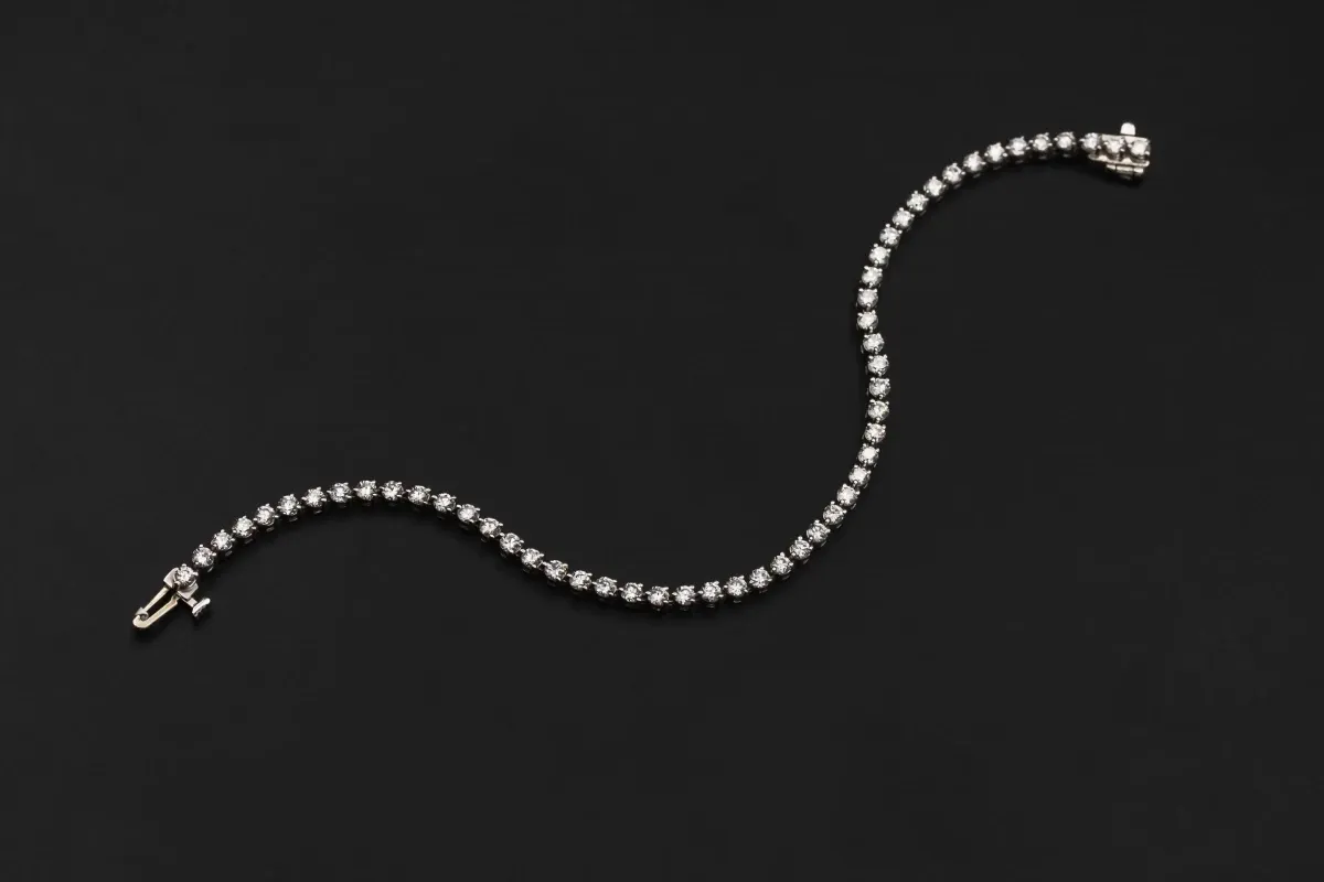 The epitome of timeless design. This endearing lab grown 14ct white gold tennis bracelet features 3.35ct F-G colour VS1 diamonds which will add an element of timeless sophistication to your jewellery collection.