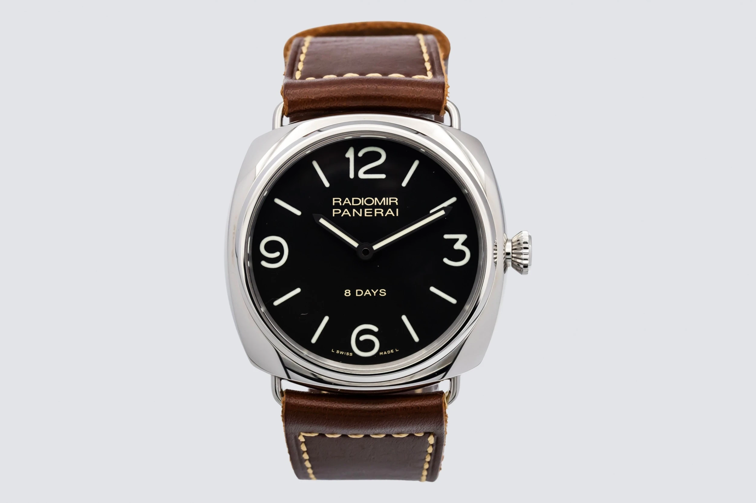 The Radiomir line traces its origins back to the 1930s, when Panerai first developed oversized, highly legible watches for the Italian Royal Navy’s frogmen, utilising radium-based luminous paint (hence the name “Radiomir”). Over decades, the design has been refined while keeping its distinctive cushion case and utilitarian ethos.
