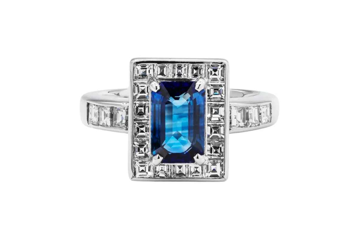 This timeless piece beautifully combines the regal allure of the sapphire with the timeless elegance of diamonds.