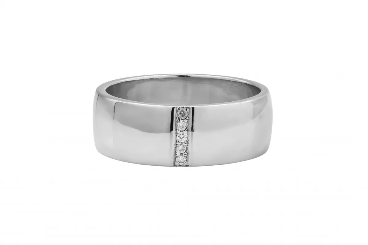 This platinum diamond ring showcases 0.20ct round brilliant cut diamonds at its centre, offering timeless elegance and sparkle.