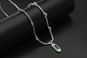 18ct White Gold Diamond and Emerald Necklace 3.61cts