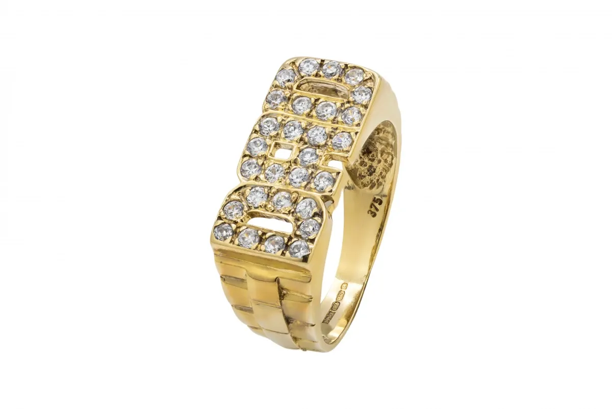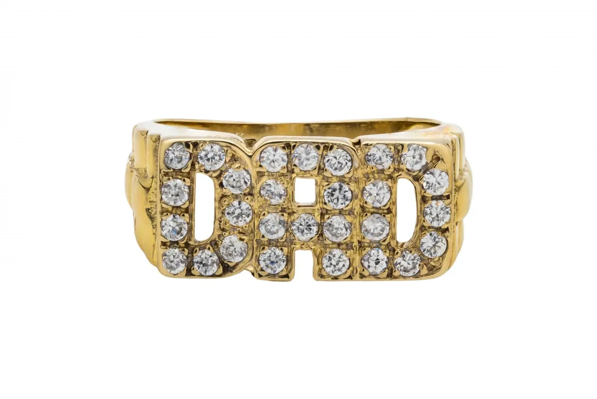 9ct Yellow Gold Cubic Zirconia Dad Ring, a heartfelt and stylish tribute to the cherished role of a dad.