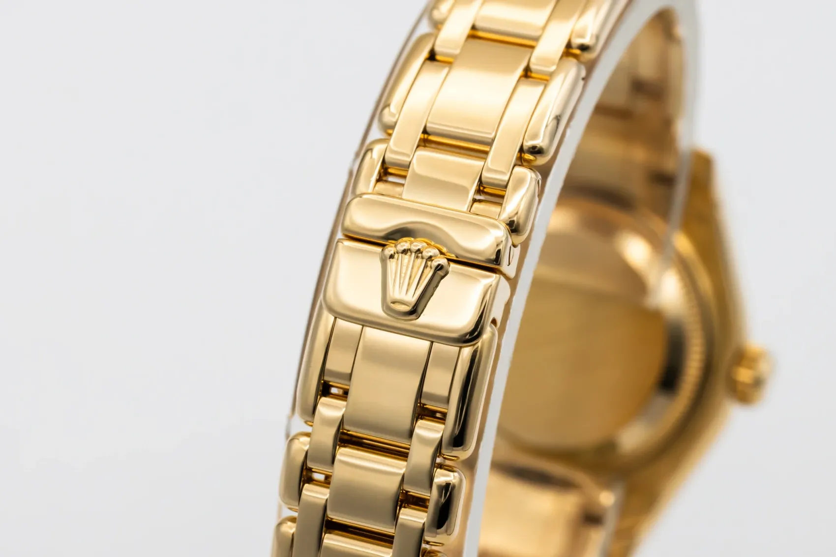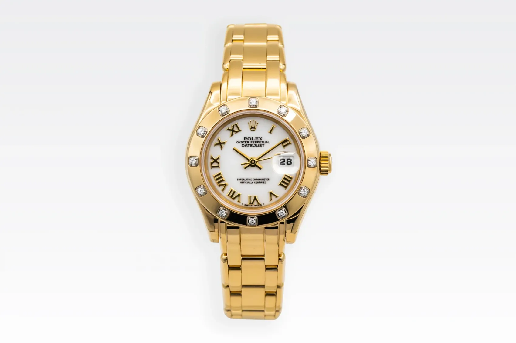 finance this from £261.3 p/m call the shop Read about our Limited Lifetime WarrantyThis 1997 Rolex Pearlmaster 29mm features a white dial with roman numerals and 18ct yellow gold pearlmaster bracelet. It also features a 18ct yellow gold engraved scattered diamond bezel.