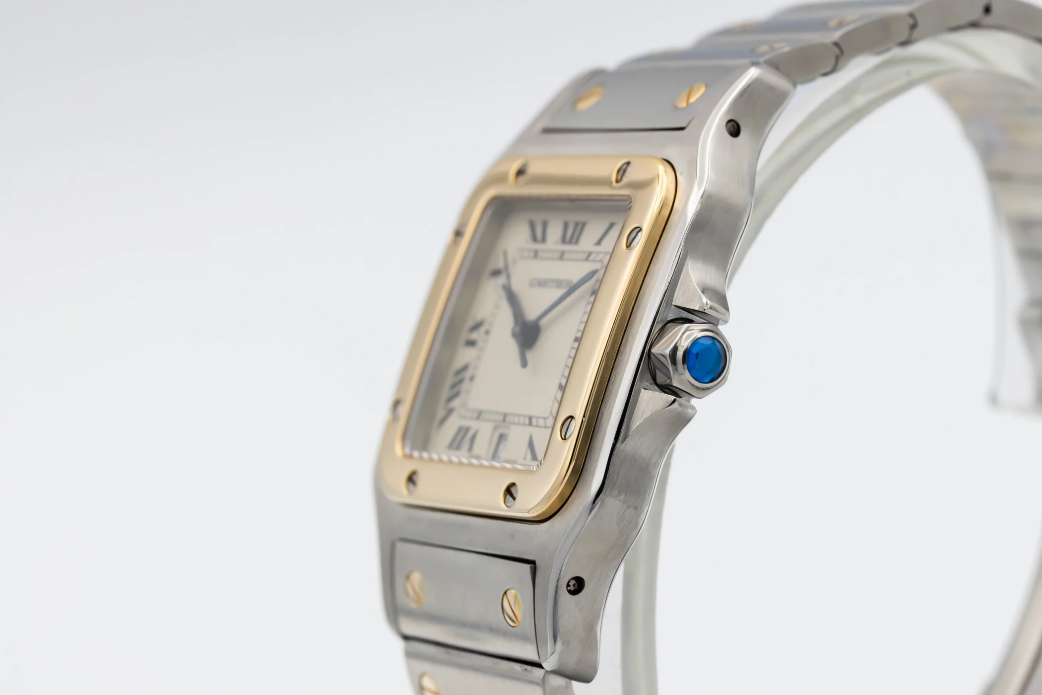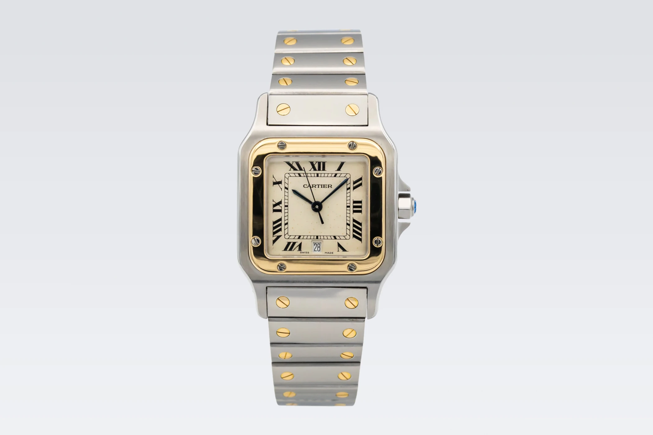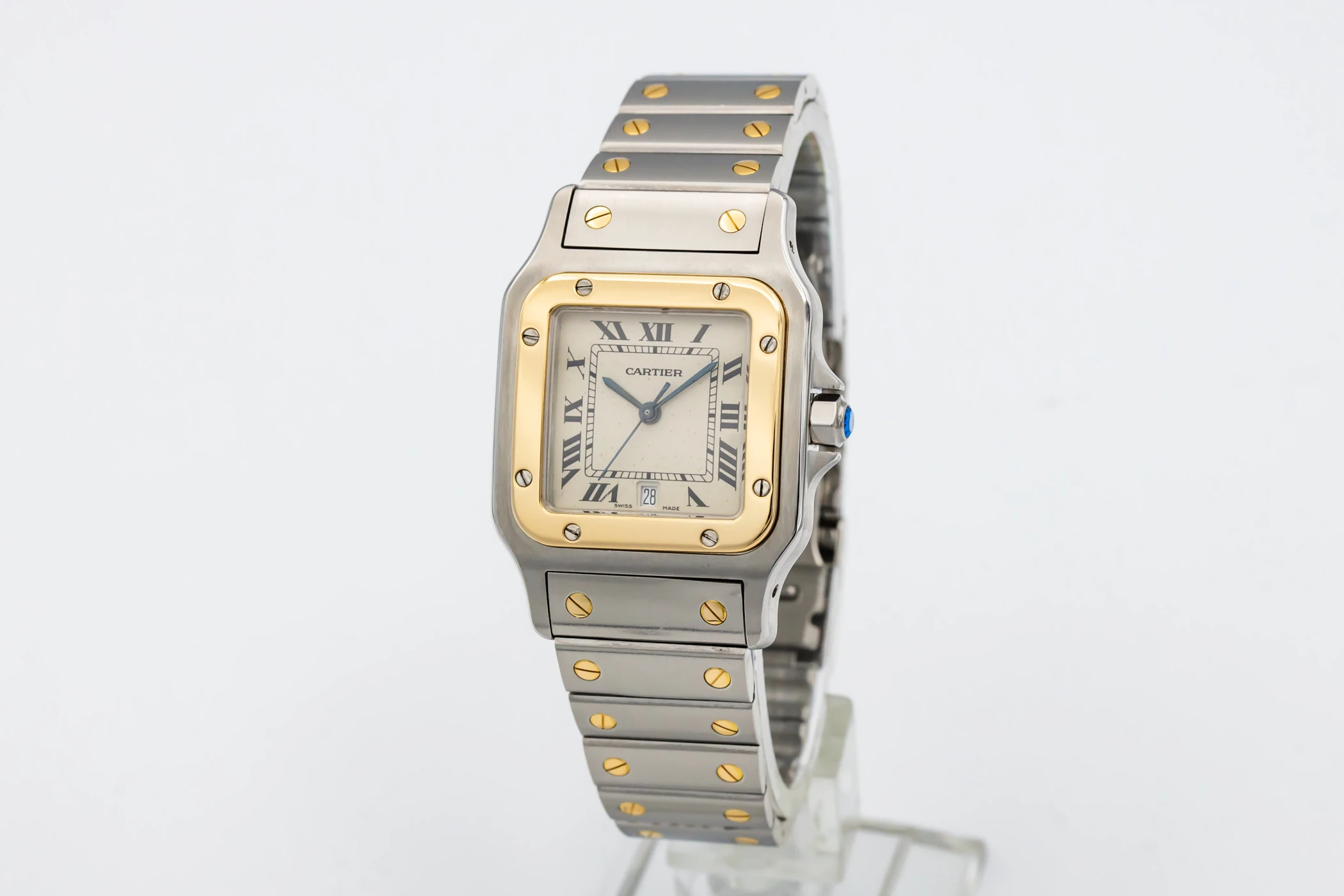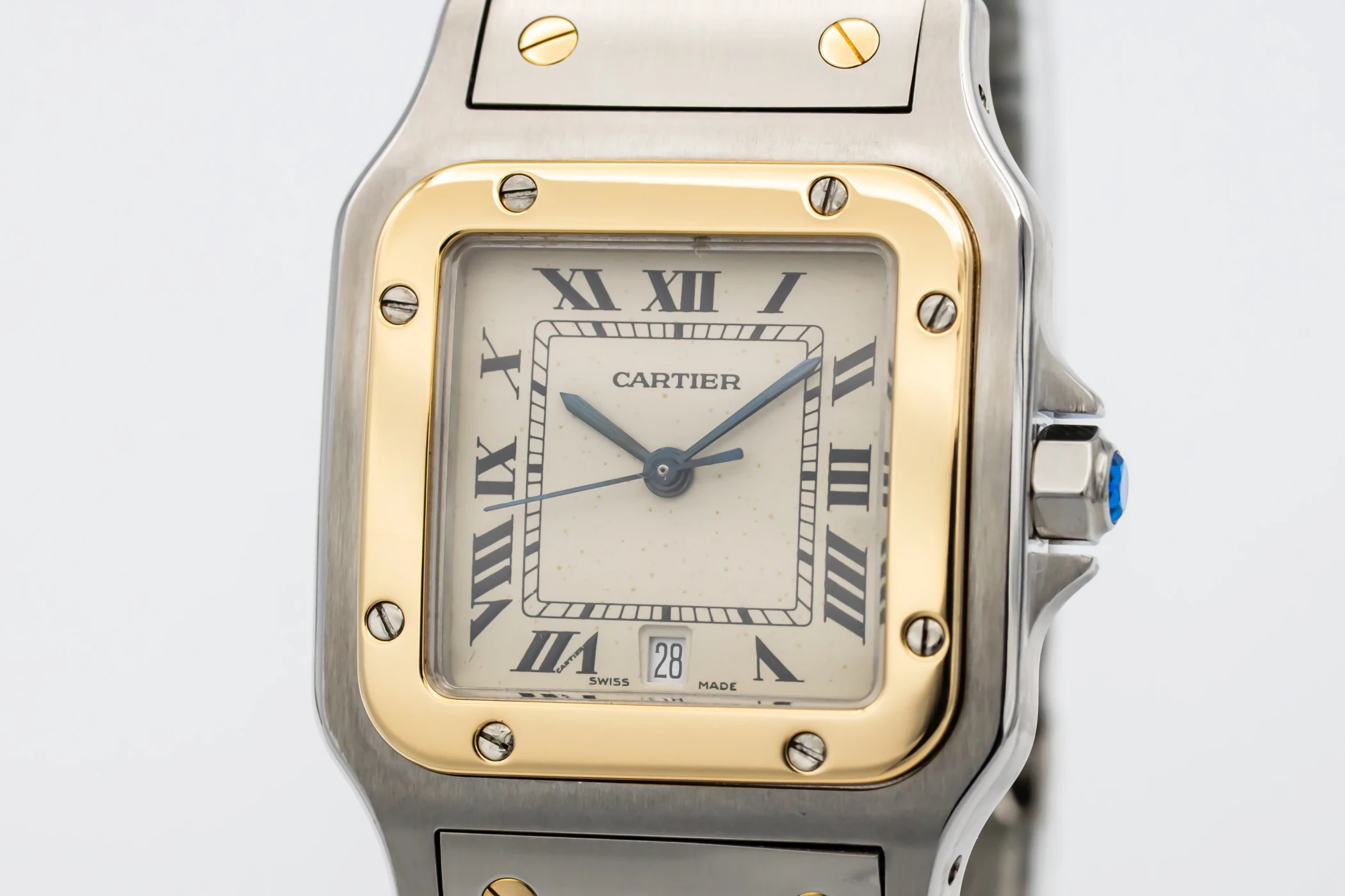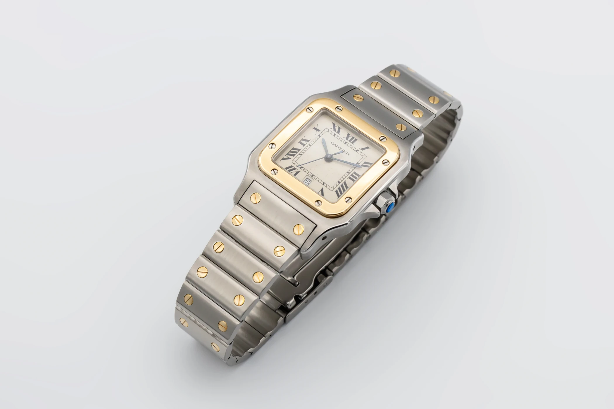 finance this from £67.17 p/m call the shop Read about our Limited Lifetime WarrantyThis circa 2000s Cartier Santos Galbee 29mm features a silver dial with roman numerals and a stainless steel and 18ct yellow gold bracelet. It also features a 18ct yellow gold smooth bezel.