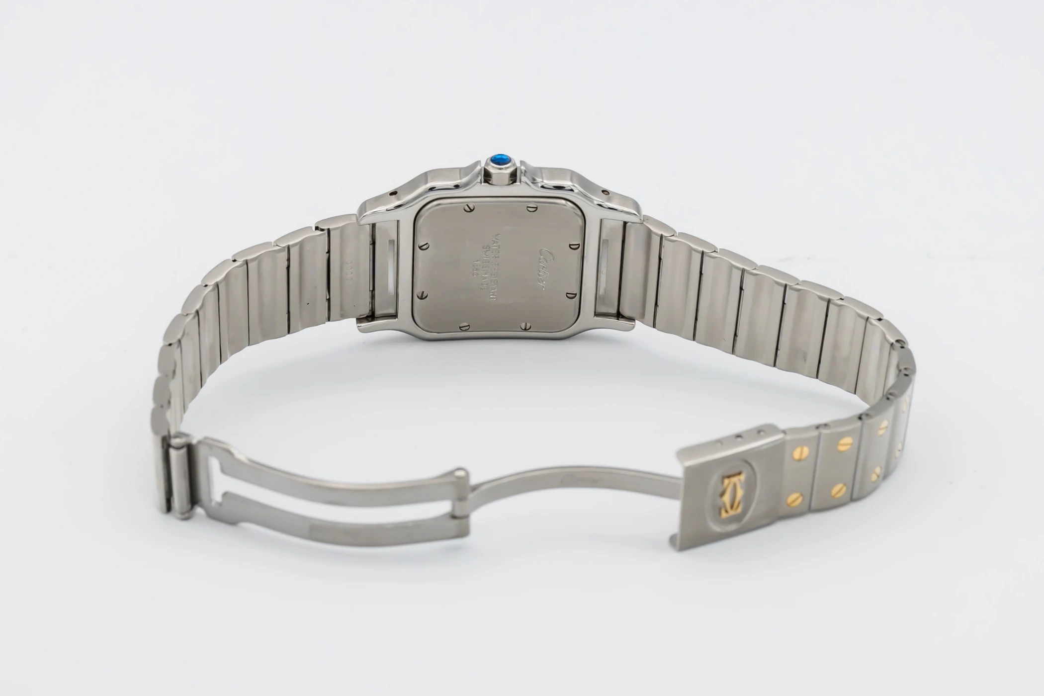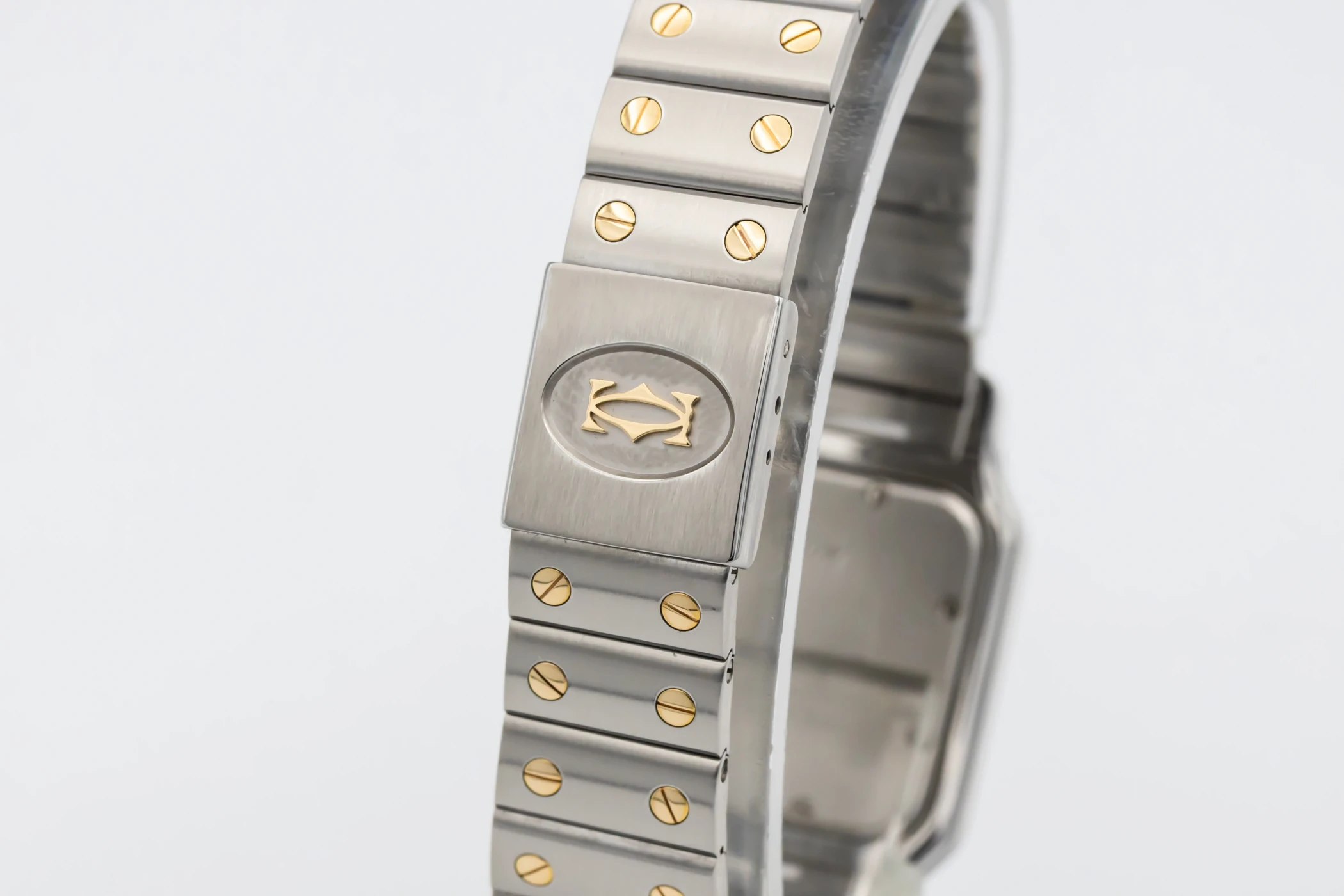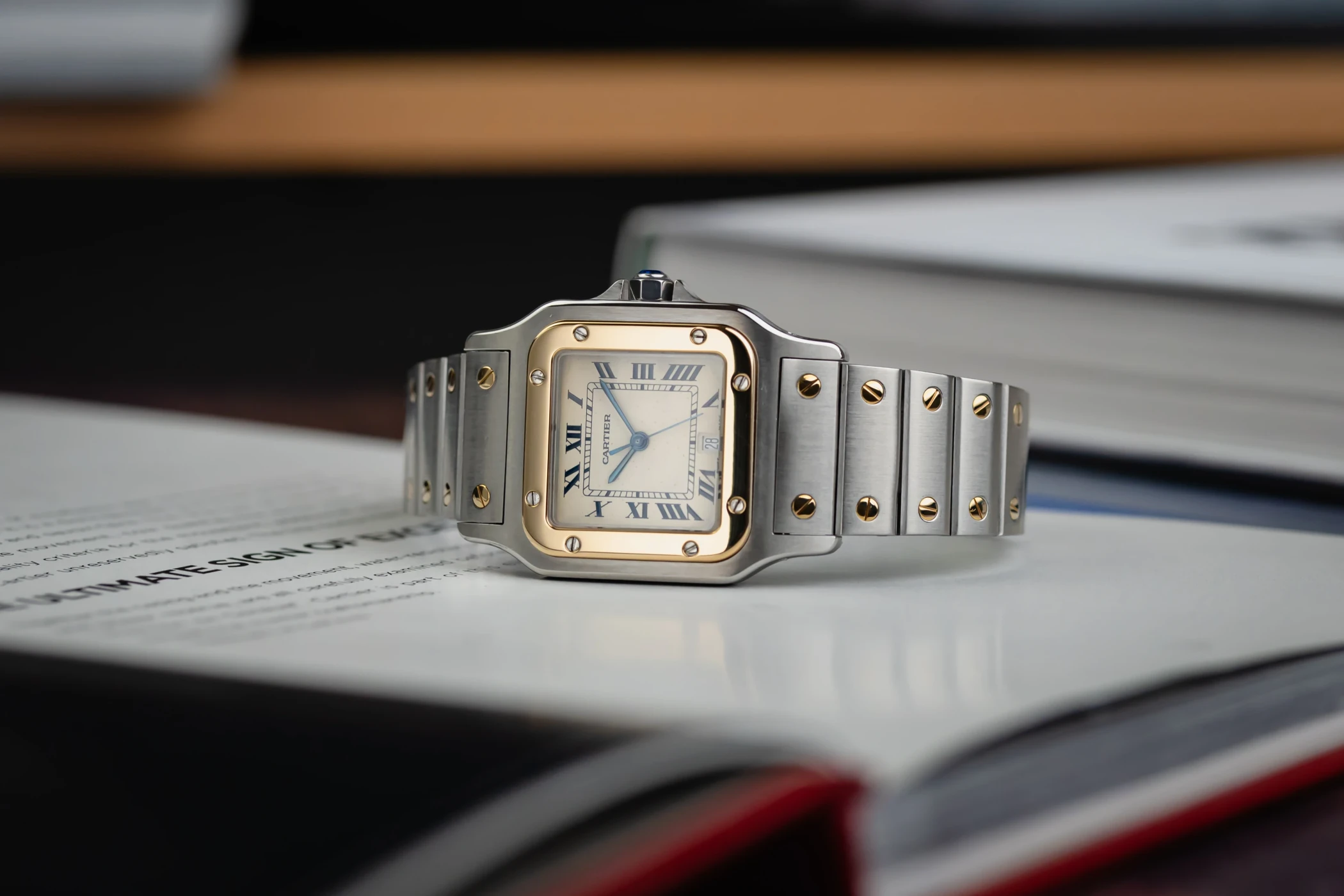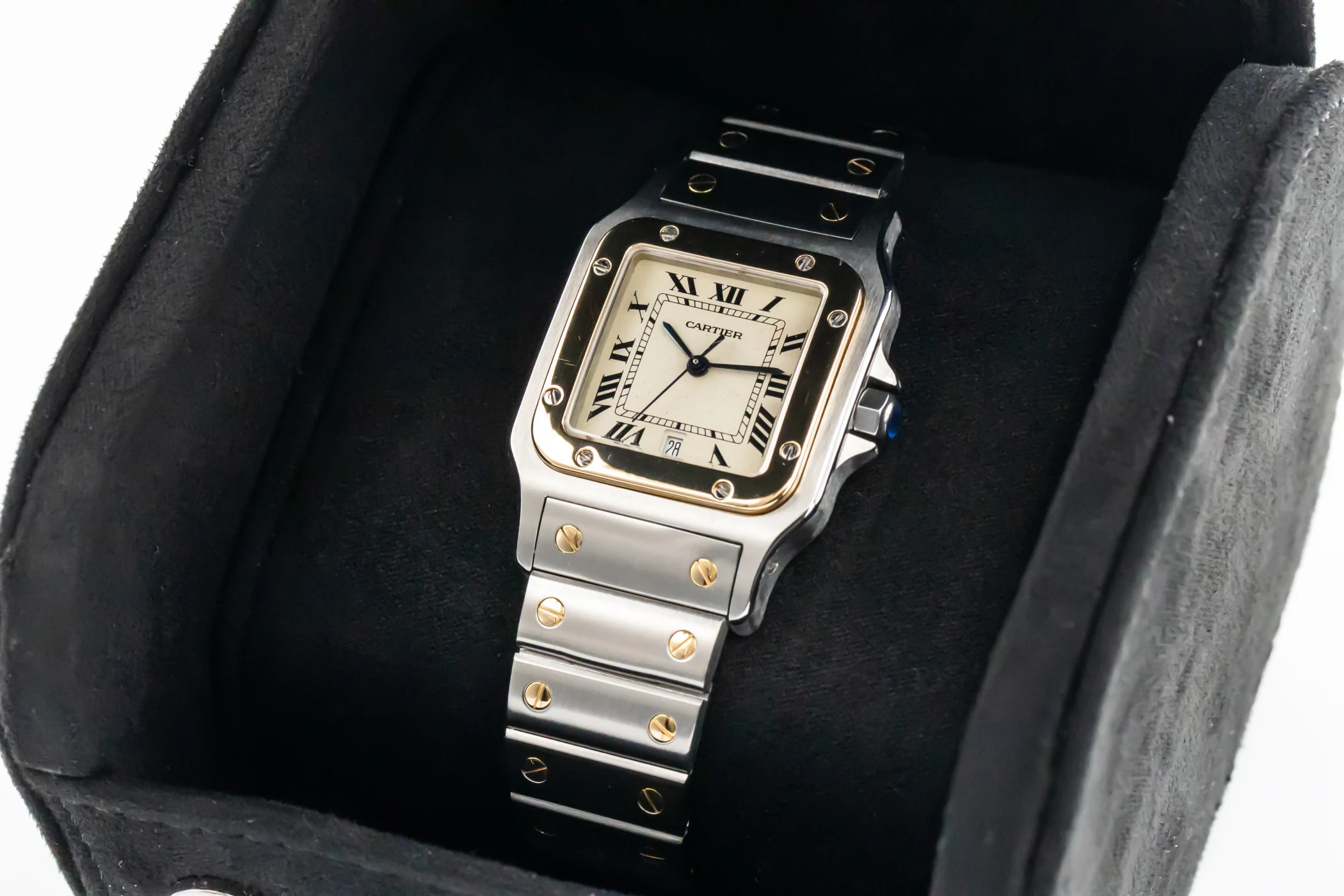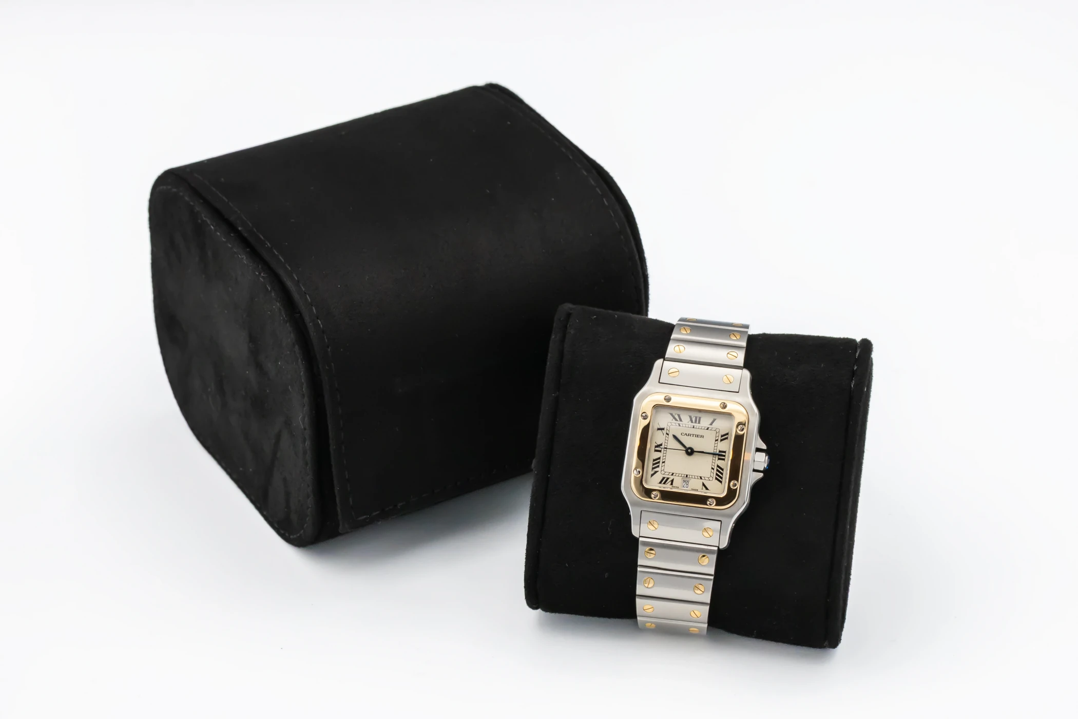 finance this from £67.17 p/m call the shop Read about our Limited Lifetime WarrantyThis circa 2000s Cartier Santos Galbee 29mm features a silver dial with roman numerals and a stainless steel and 18ct yellow gold bracelet. It also features a 18ct yellow gold smooth bezel.