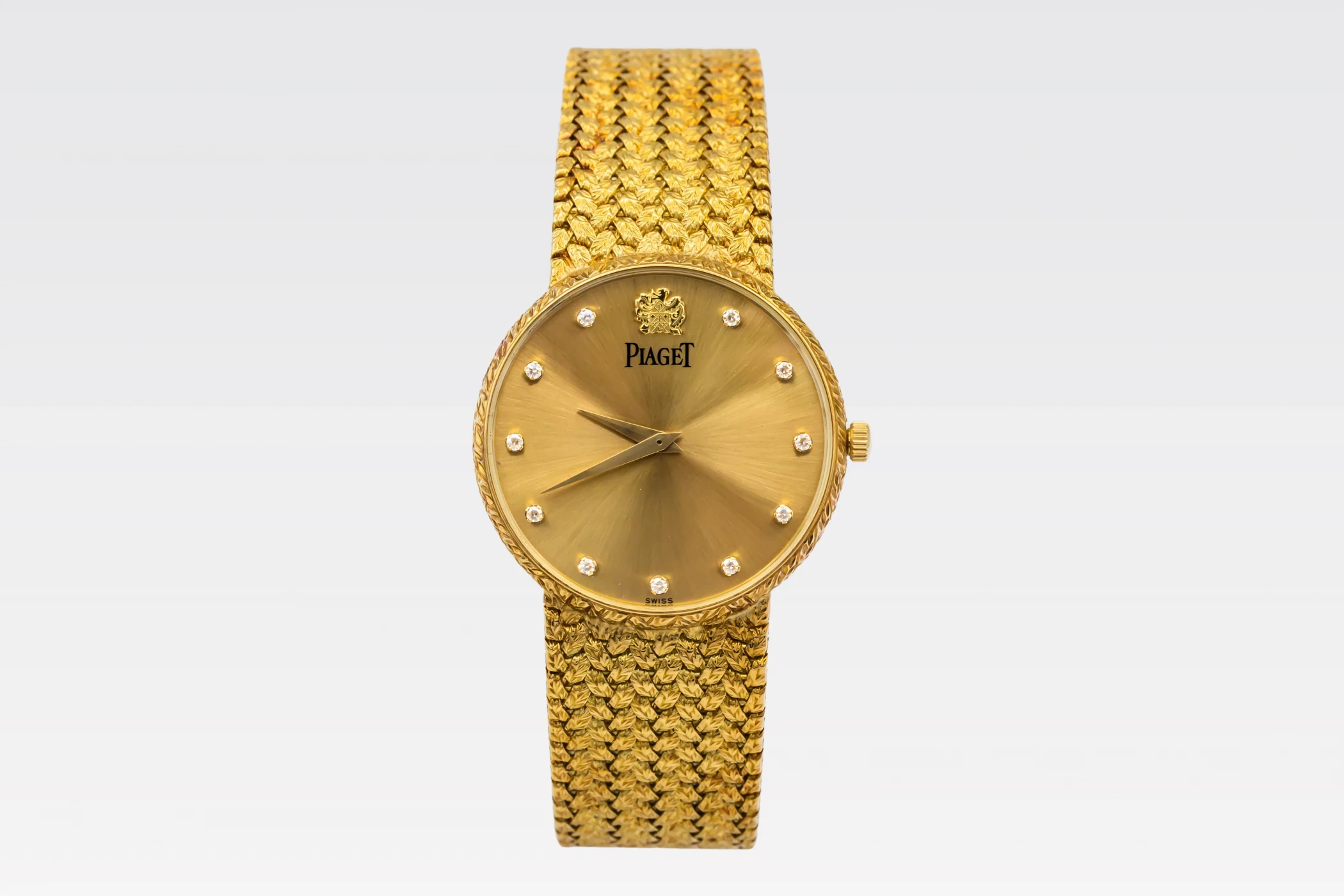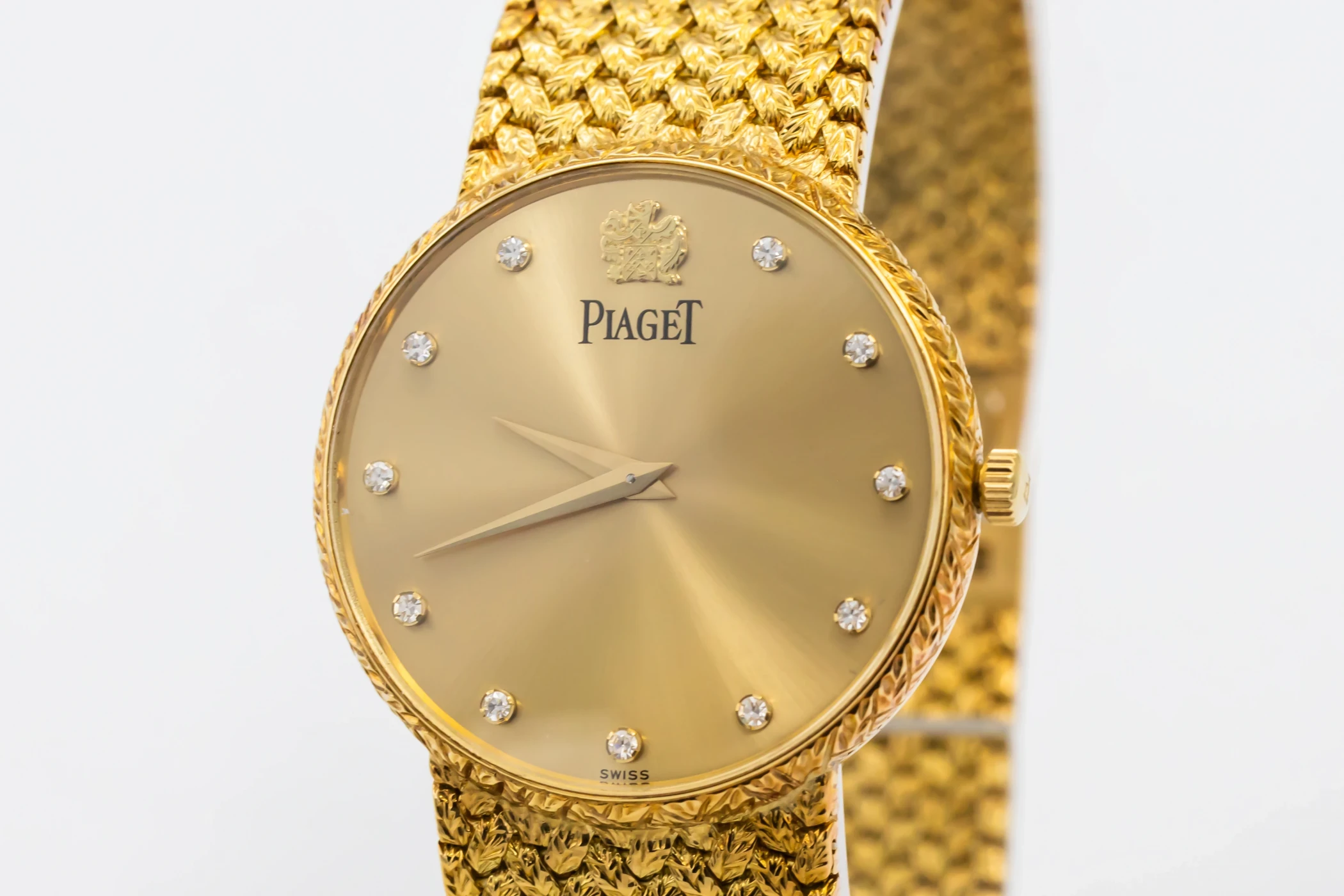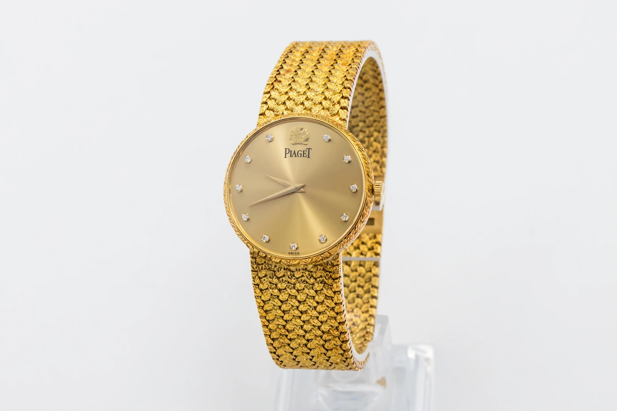 This 1997 Piaget Dancer 31mm features a champagne dial with 11 dazzling diamonds, that shimmer delicately with each movement, while the polished bezel complements the integrated gold bracelet.