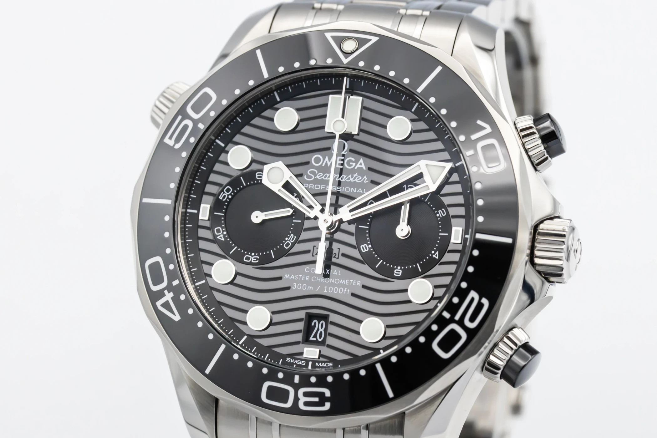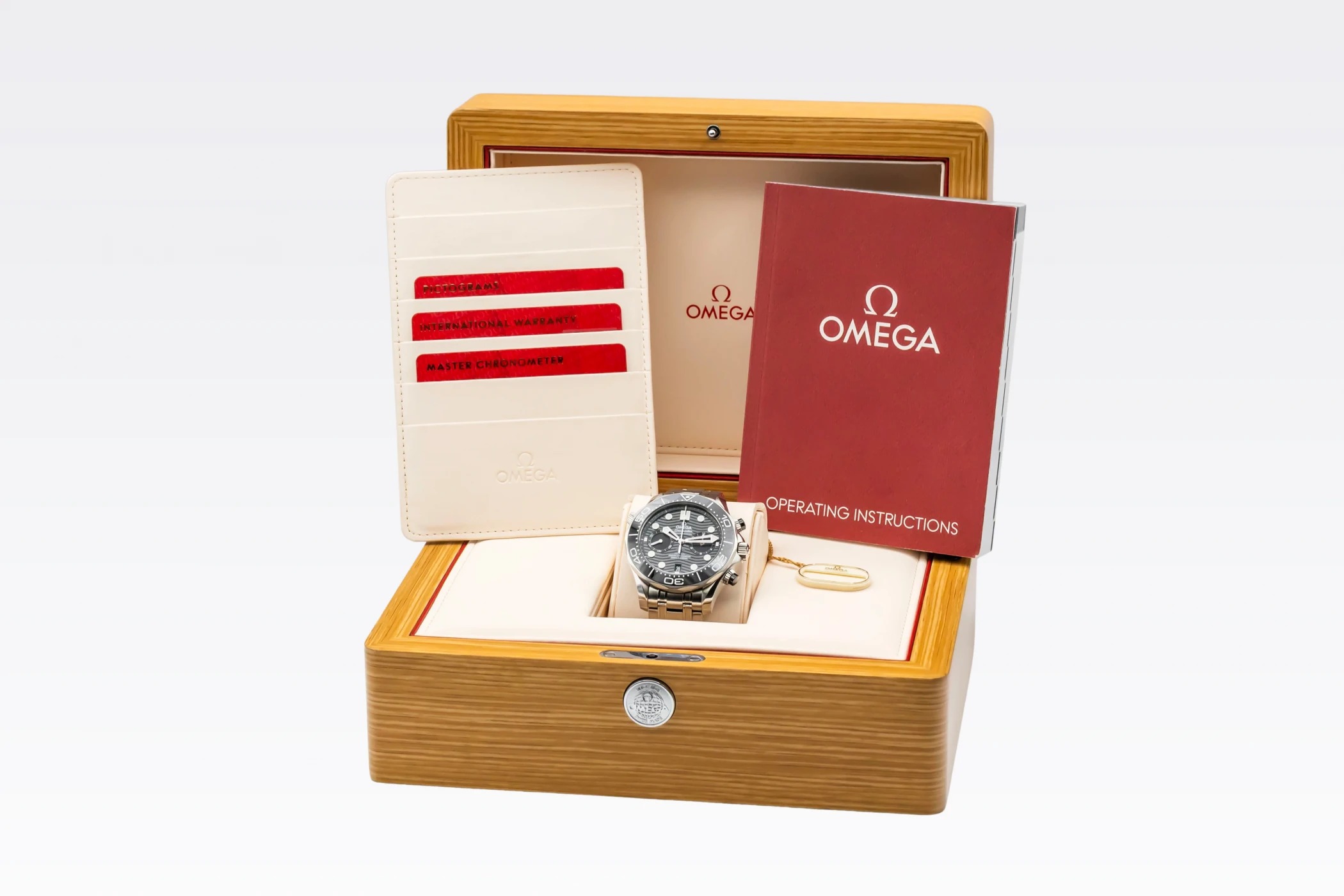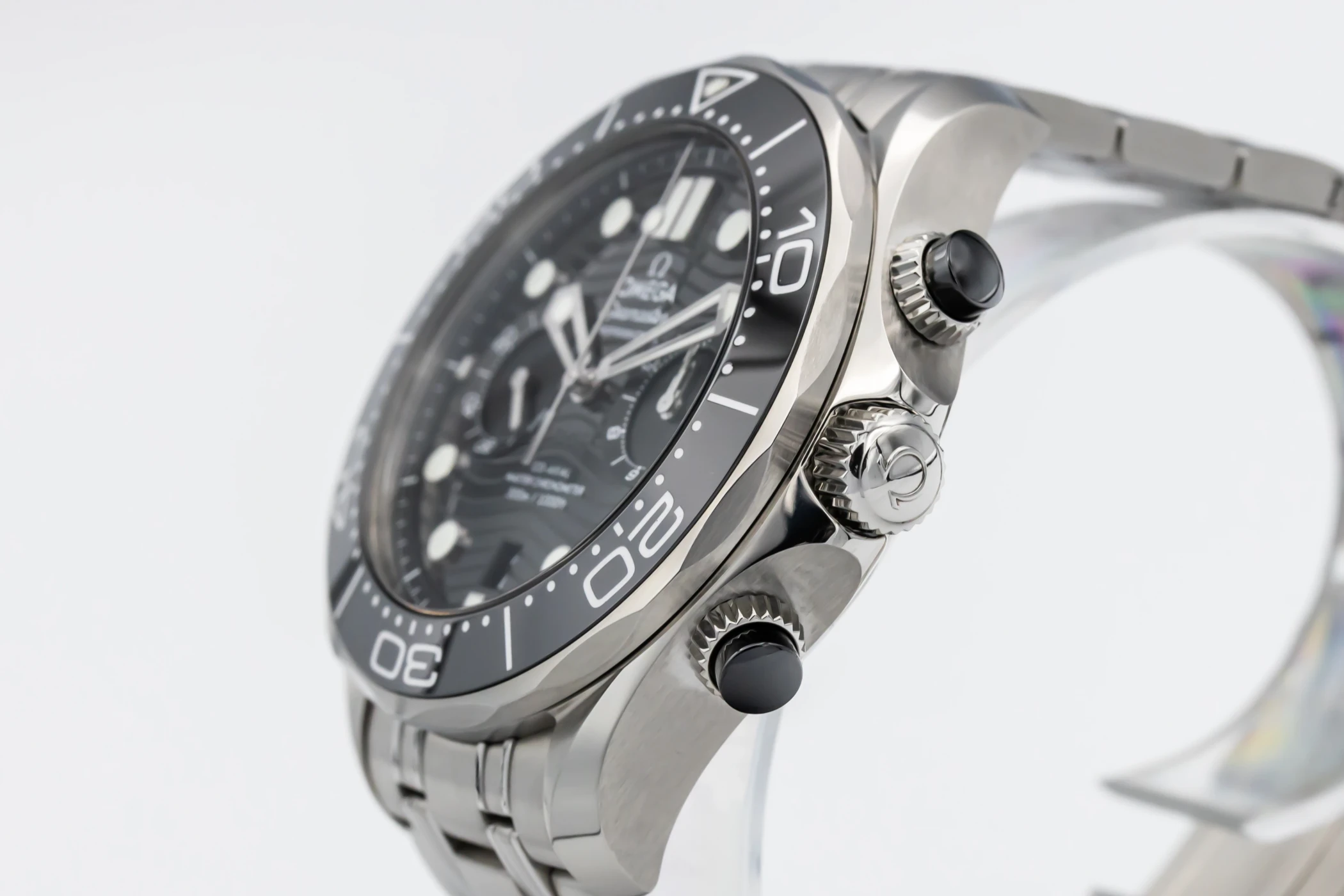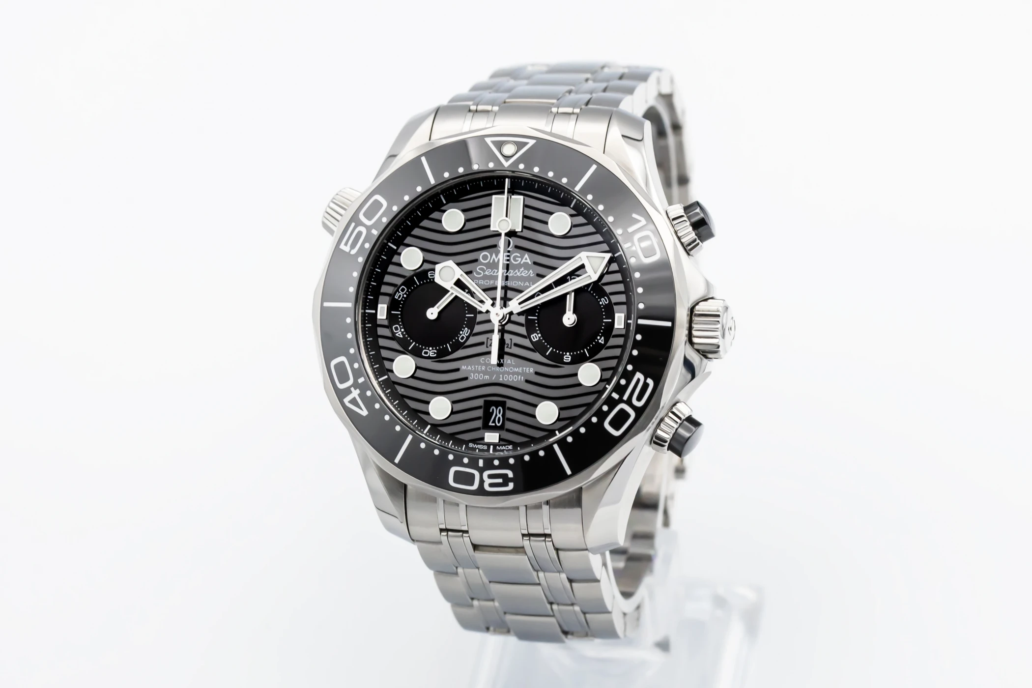 finance this from £85.94 p/m call the shop Read about our Limited Lifetime WarrantyThis 2023 OMEGA Seamaster Diver 300m 44mm features a black ceramic dial with laser-engraved wave patterns and luminous hour markers. It is also paired with a stainless steel bracelet with a folding clasp ensures durability and comfort, completing this dynamic, high-performance design.